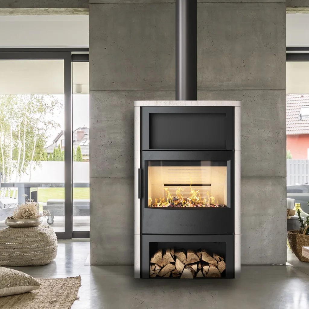 Wiking Maxi 6 med täljstensbeklädnad kombinerar modern teknik med naturlig värmelagring – perfekt för dig som vill ha långvarig värme och tidlös design i hemmet. Med sin breda eldstadsöppning och det stora frontglaset får du en fantastisk utsikt till lågorna, vilket skapar en varm och inbjudande känsla i hela rummet.
