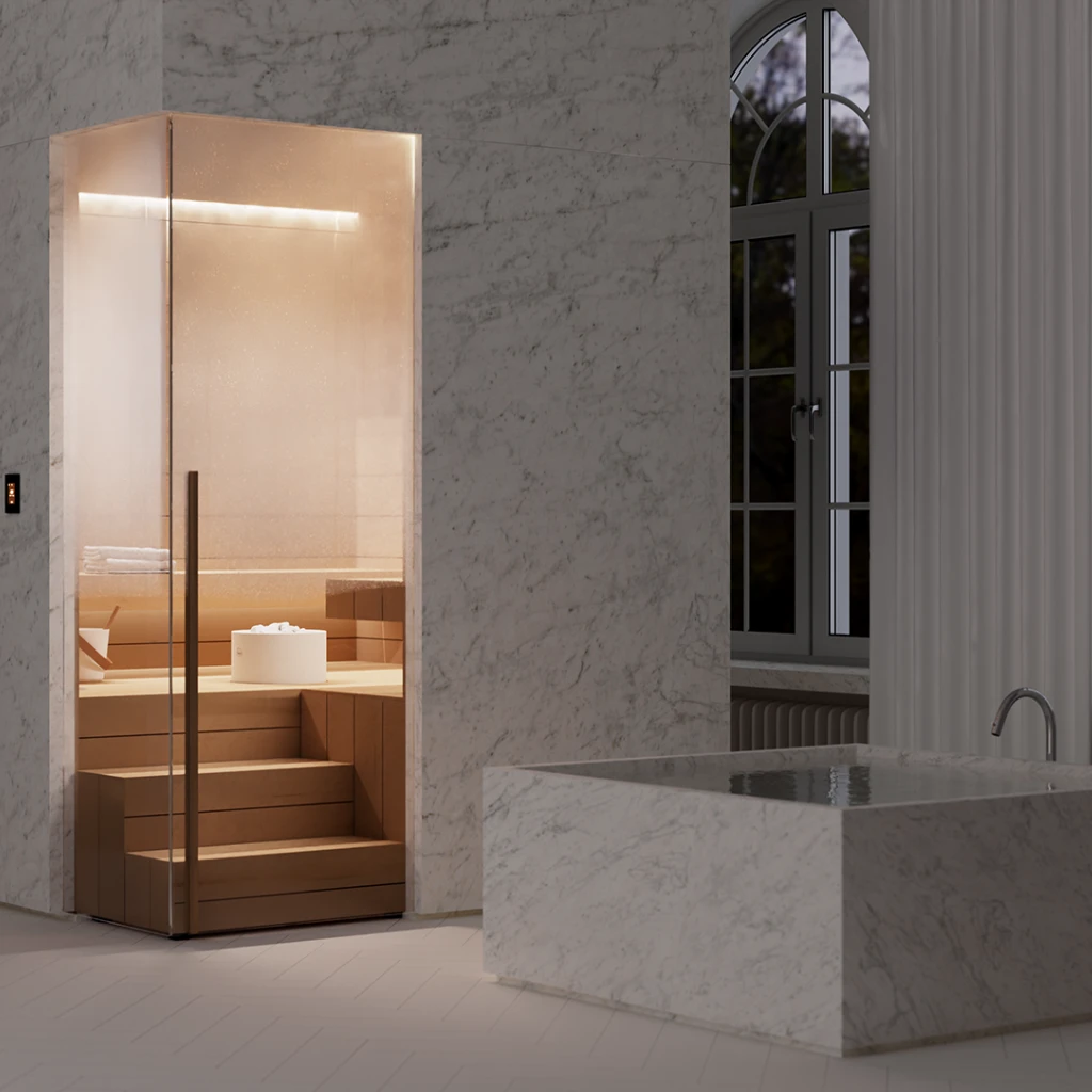 Ugnen kan enkelt integreras i bastulavar och bänkar, utan behov av skyddsräcken. Det gör att den smälter sömlöst in i bastuns inredning och bidrar till ett stilrent, harmoniskt uttryck, oavsett om bastun har modern eller klassisk stil.
