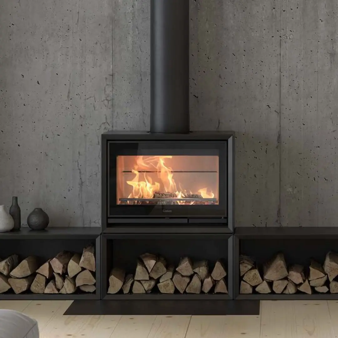 För dig som vill kombinera funktion med form finns ett matchande vedfack i tre olika storlekar. Vedfacket kan placeras under eller vid sidan av kaminen och gör Contura 330G till en praktisk och personlig möbel. Välj mellan ett öppet fack eller en version med utdragslåda för dold förvaring – perfekt för dig som vill hålla ordning och skapa ett enhetligt intryck i rummet.
