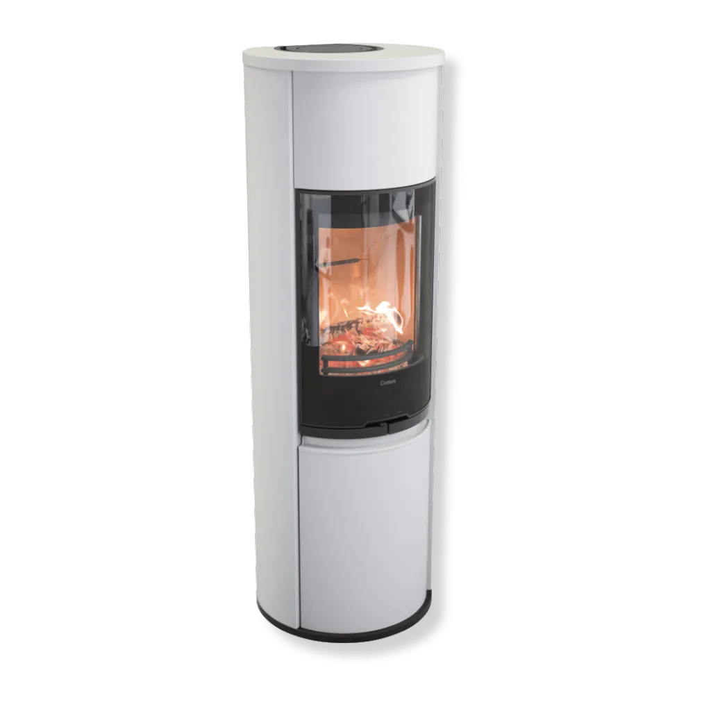 Med glasluckan i fronten får Contura 690G ett samtida uttryck som passar i både moderna och klassiska hem. Du kan anpassa modellen efter din stil genom att välja mellan tre färger, tre olika toppskivor (glas, gjutjärn eller täljsten) och flertalet tillbehör, som nedre lucka (standard), vedförvaring eller ett värmemagasin i Powerstone för extra lång värmelagring.