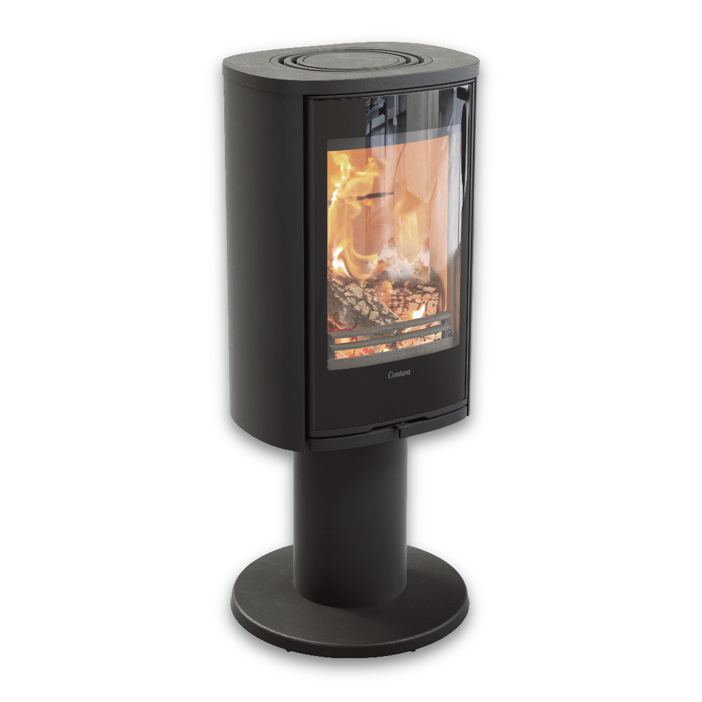 Contura 870 G är en väldesignad braskamin på pelare med en stilren glaslucka som lyfter fram elden och reflekterar ljuset i rummet. Den upphöjda placeringen gör att lågorna syns ännu bättre – perfekt för dig som vill att elden ska ta plats i inredningen.