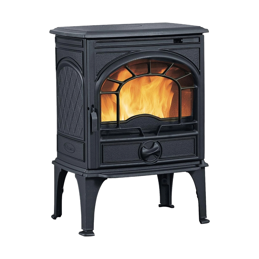 Dovre 425 CB är en tidlös vedkamin i klassisk gjutjärnsdesign med vackra, mönstrade sidor och en välvd glaslucka som ger fin insyn till elden. Det traditionella uttrycket förstärks av luckans dekorativa spröjs, inspirerade av historiska järnkaminer – men här i kombination med modern teknik.