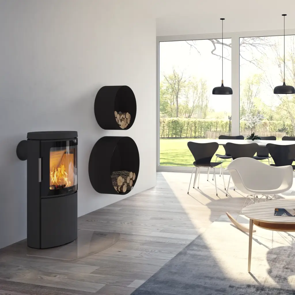 Ellipsformen ger Hwam 3120 ett vackert och lätt uttryck. Kaminens form och finish är genomarbetad hela vägen runt omkring och därför kan den placeras både i ett hörn, på en rak vägg eller till och med mitt i rummet.