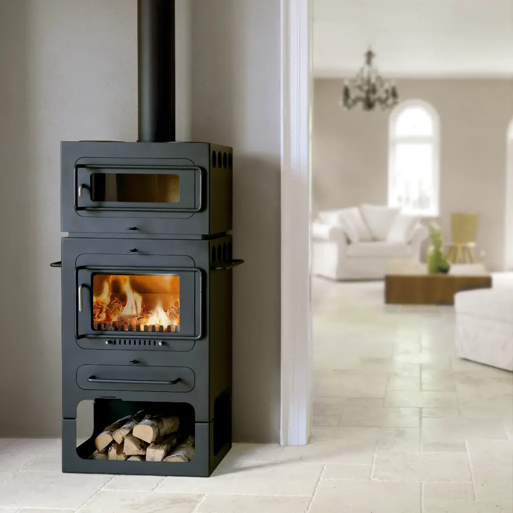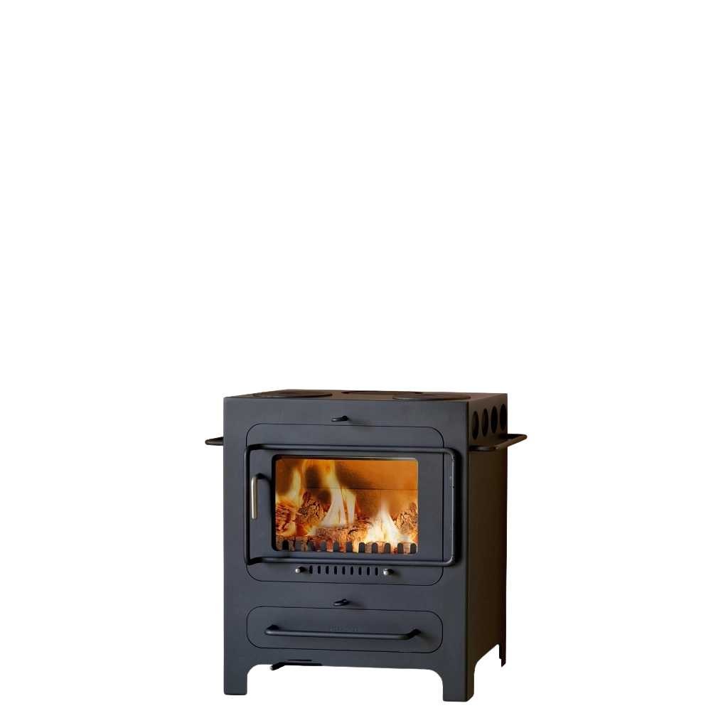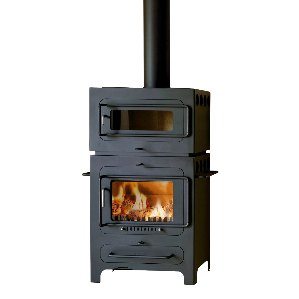 Hwam Classic 4 finns i fyra olika konstellationer. Själva braskaminen har två kokplattor för uppvärmning och tillagning av mat. Du kan lägga till en praktisk bakugn som gör det möjligt att utnyttja värmen från brännkammaren för gräddning av pizza, bröd eller vad du nu vill baka. Genom att lägga till ett vedfack kan du förvara veden under braskaminen – snyggt och praktiskt. Vad mer kan man begära?