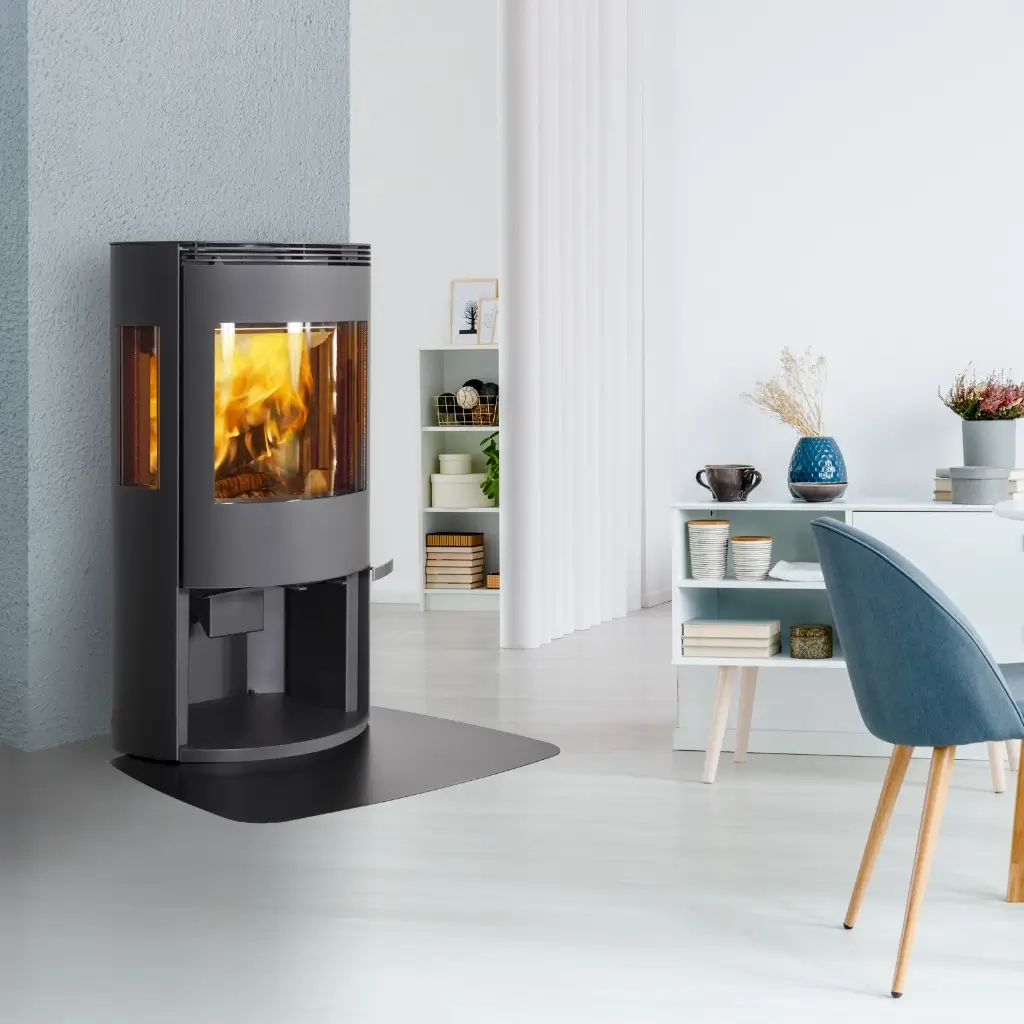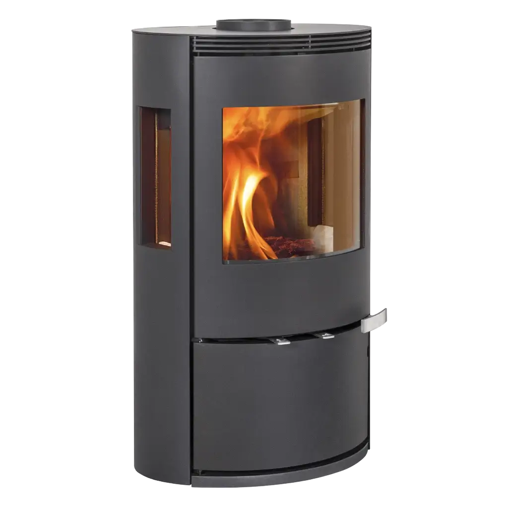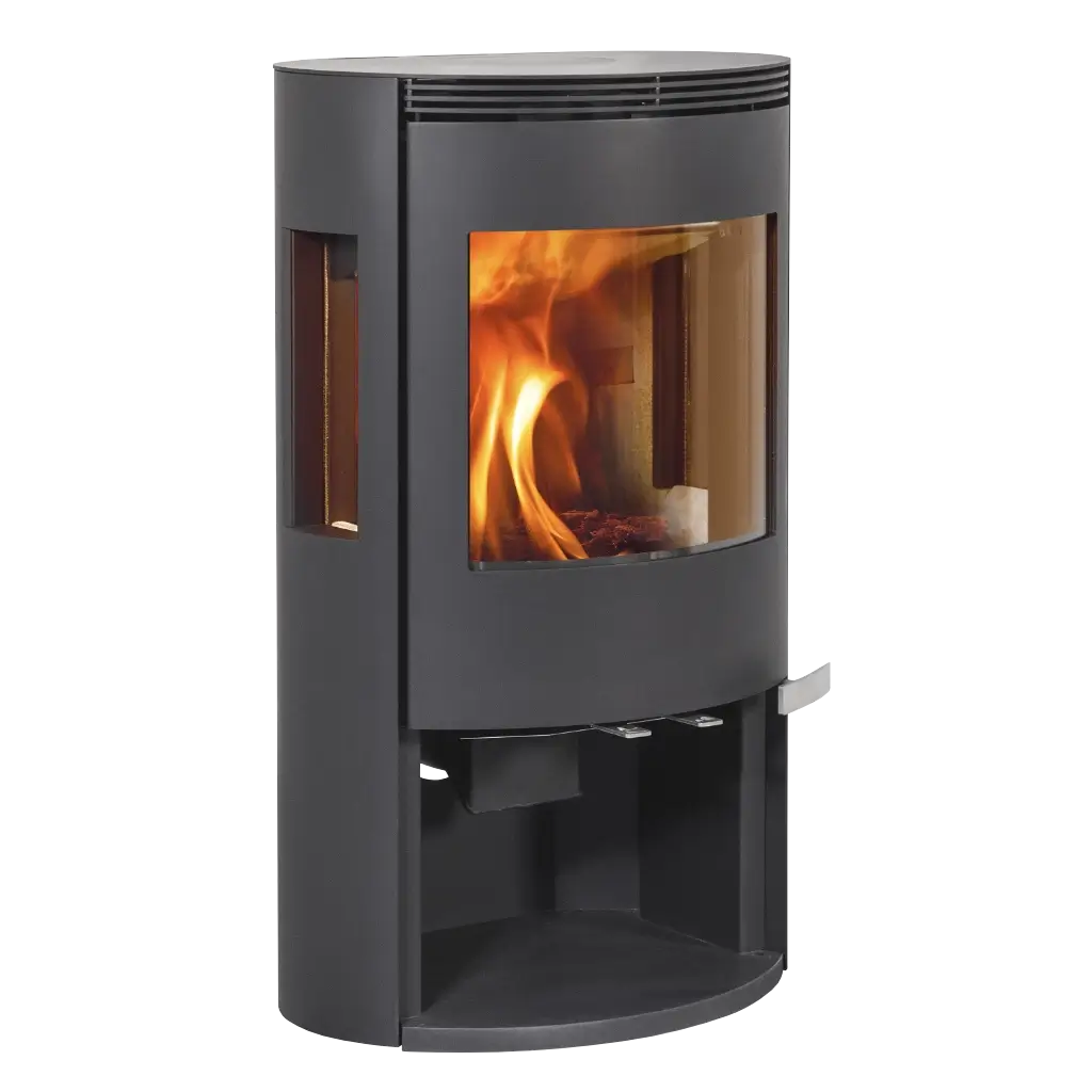 Upplev eldens magi från alla vinklar med ILD 10 ECO! Tack vare den böjda glasfronten och sidoglasen får du en fantastisk panoramavy över lågorna, oavsett var du befinner dig i rummet.