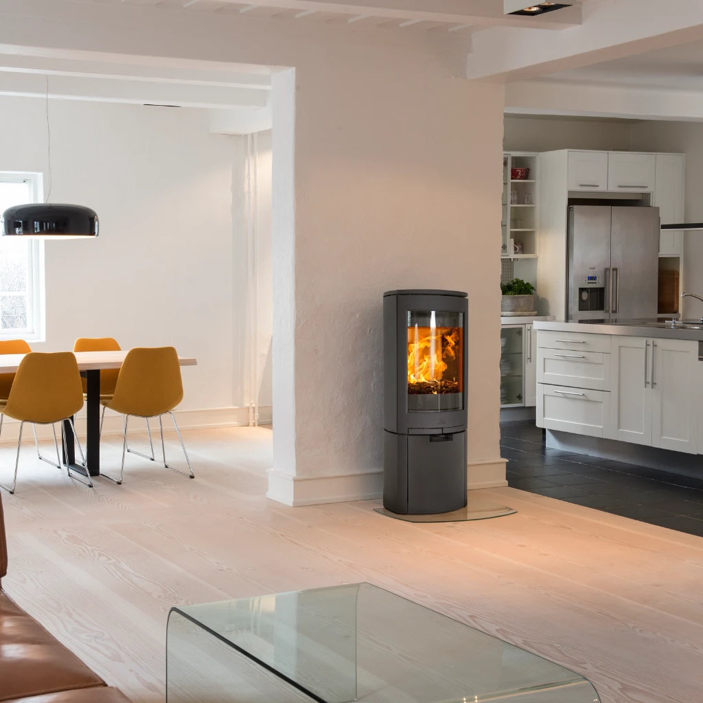 Jøtul F 368 kombinerar praktiska funktioner med stilren skandinavisk design. De många anpassningsmöjligheterna gör att kaminen kan smälta in i både moderna och klassiska hem och blir en central del av rummet.