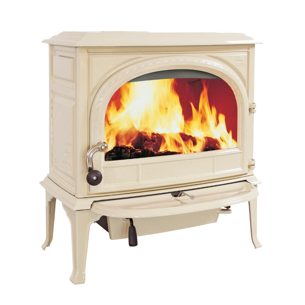 Jøtul F 400 Eco är en av Norges största klassiska vedkaminer och rymmer vedträn upp till hela 50 cm. Den robusta konstruktionen i gjutjärn kombinerar funktionalitet med traditionell charm, vilket gör den till ett populärt val för både fritidshus och året runt-boenden.