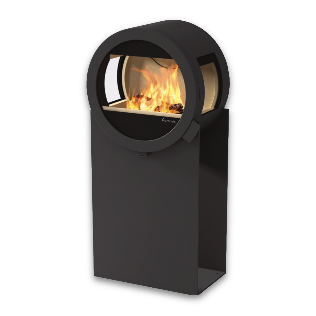 Nordpeis Me Steel är den mest uttrycksfulla modellen i Me-serien – en rund och stilren vedkamin som vilar på en elegant bas i svart stål. Med sin moderna form och robusta materialval blir den ett naturligt blickfång i hemmet.