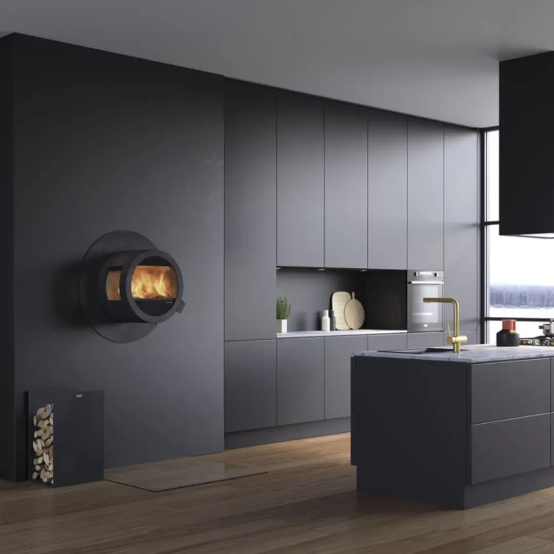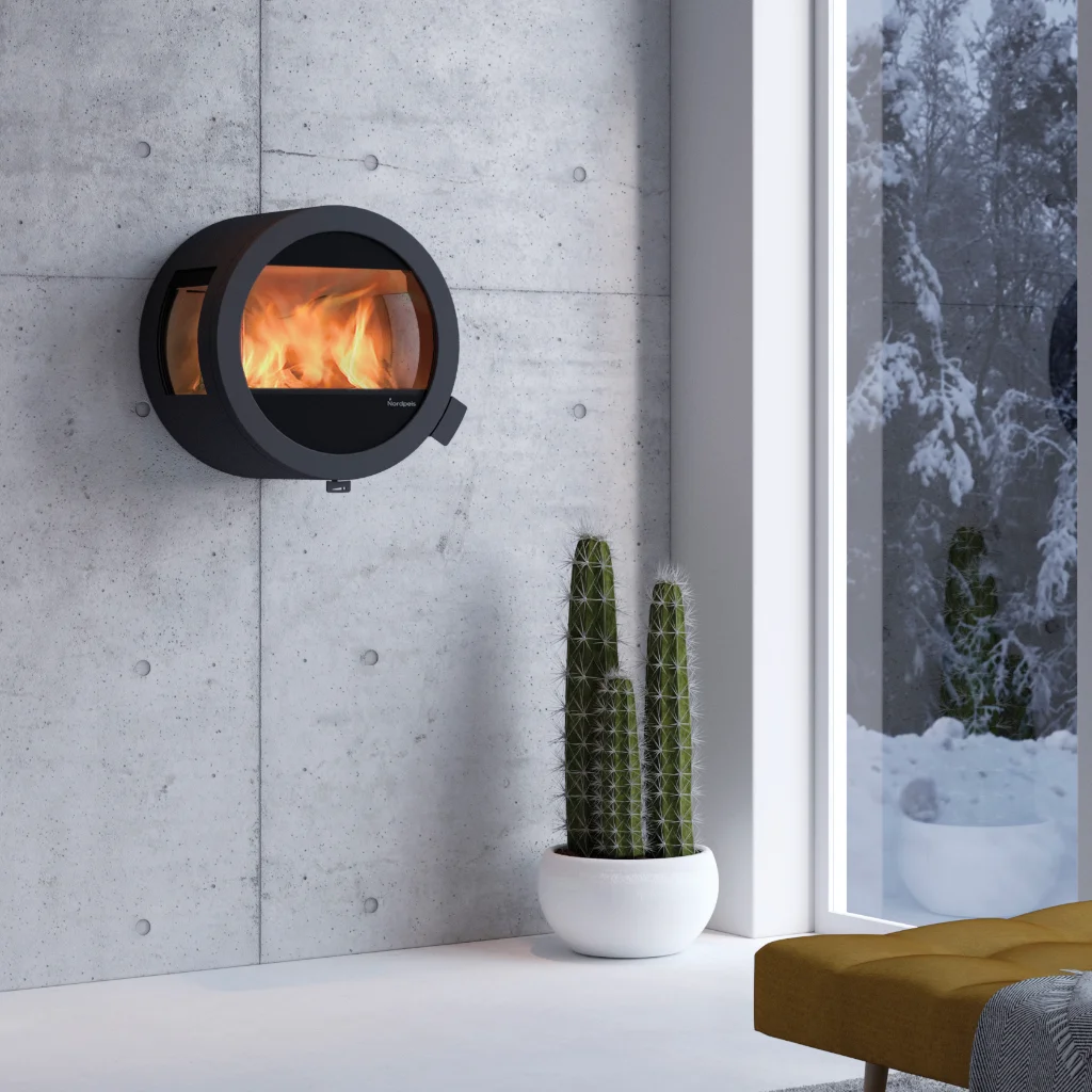 Nordpeis Me Wall är en elegant och väggmonterad vedkamin som kombinerar modern design med effektiv uppvärmning. Den karakteristiska runda formen ger ett stilrent och personligt uttryck i hemmet, samtidigt som den sparar golvyta – perfekt för mindre rum eller minimalistiska interiörer.