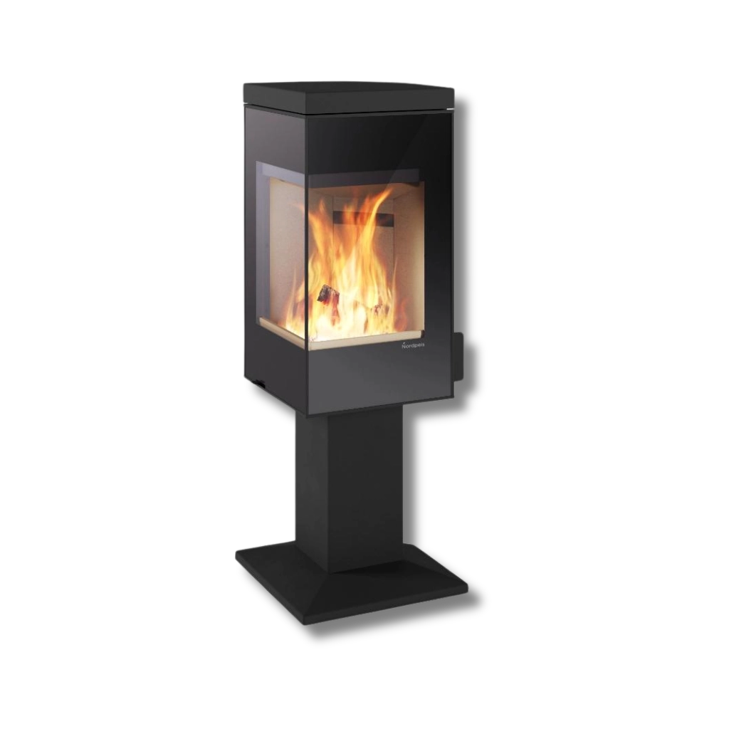 Nordpeis Quadro 1 Exclusive är en stilren vedkamin som kombinerar skandinavisk design med hög funktionalitet. Den vinklade glasluckan ger fantastisk insyn till lågorna från flera håll, vilket skapar en levande atmosfär i hela rummet. Denna exklusiva modell har utanpåliggande glas för ett modernt och sofistikerat uttryck – perfekt för dig som vill göra eldstaden till hemmets blickfång.