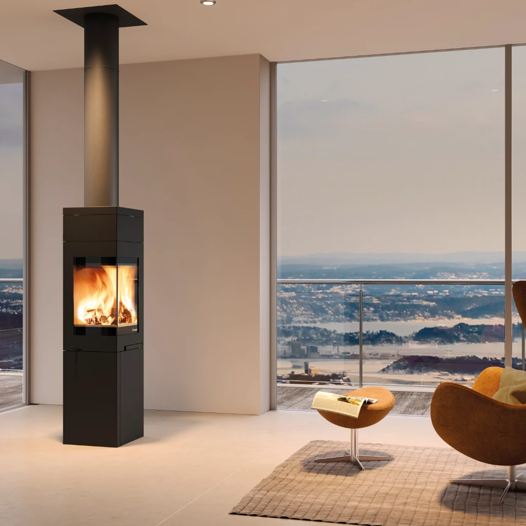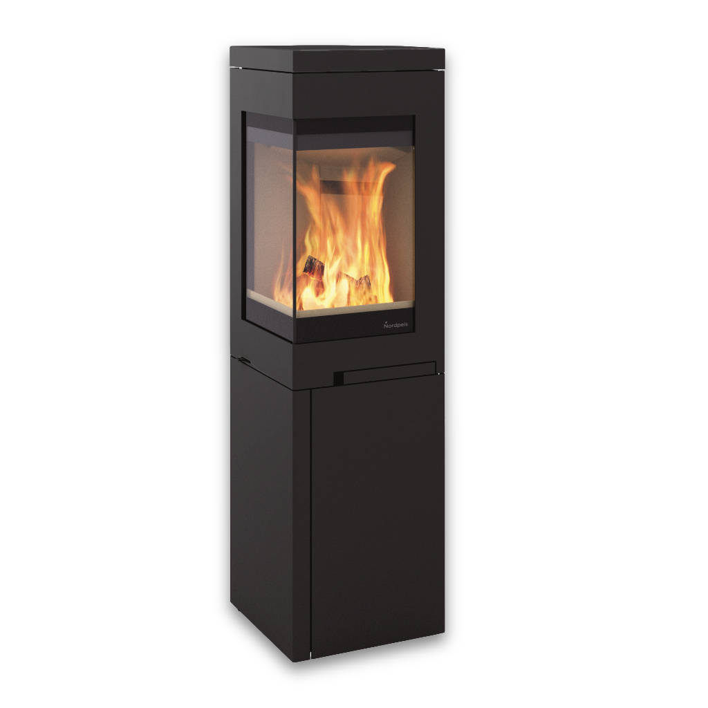 Nordpeis Quadro 3 är en stilfull vedkamin med en modern, ren design och generöst vinklat glas som ger fri sikt till lågorna från flera vinklar. Det är en flexibel braskamin som passar lika bra mot en vägg, i ett hörn eller fristående mitt i rummet – ett utmärkt val för dig som vill kombinera värme, stämning och arkitektonisk frihet.