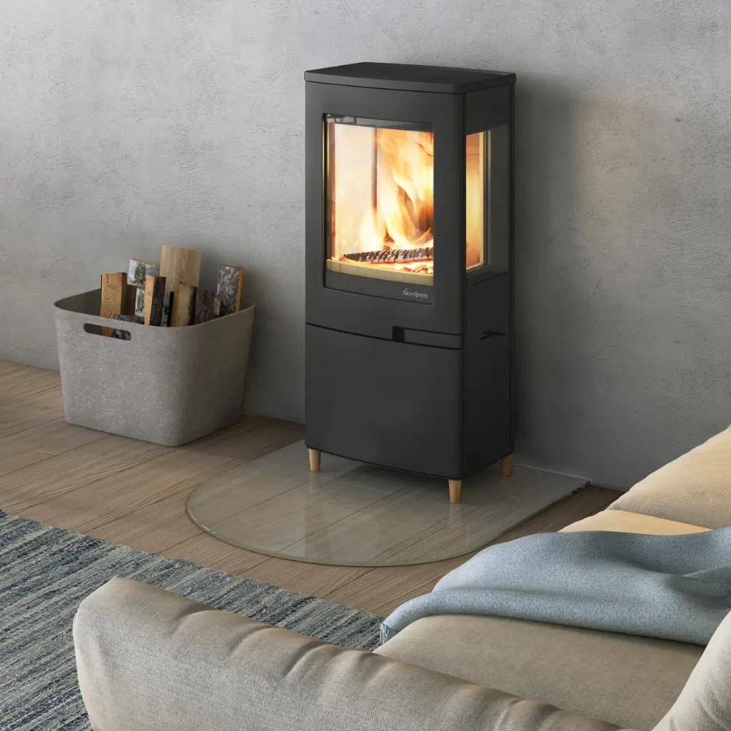 Nordpeis Uno 4 är en liten kamin med ett klassiskt, modernt skandinaviskt uttryck. Nordpeis Uno 4 har glas på tre sidor och brasan kan därför ses från flera håll. Kaminen har ett öppet och dekorativt vedfack i underdelen. Luckan är försedd med ett automatiskt låssystem, vilket ökar både säkerheten och bekvämligheten.