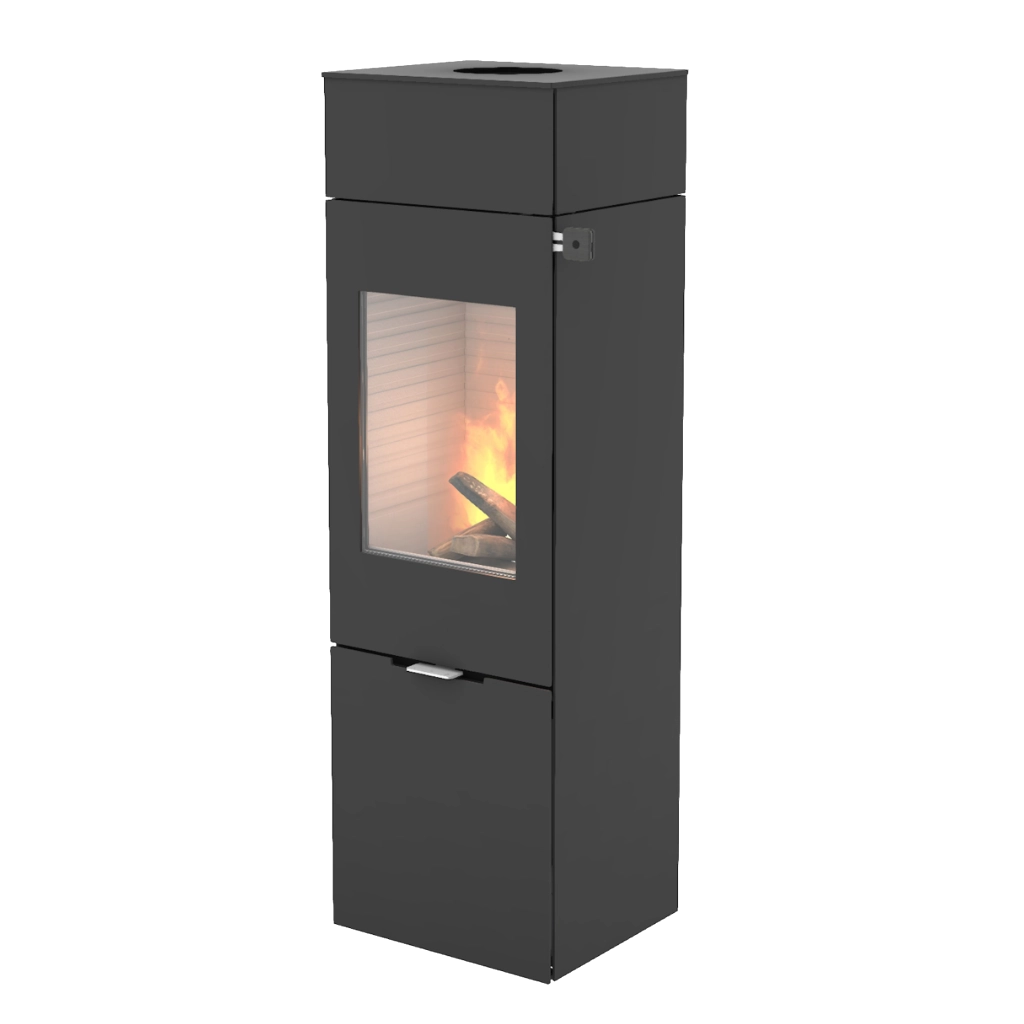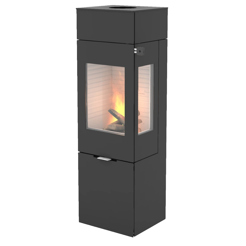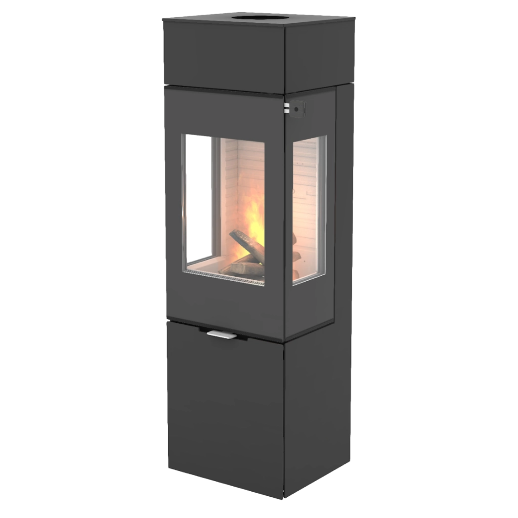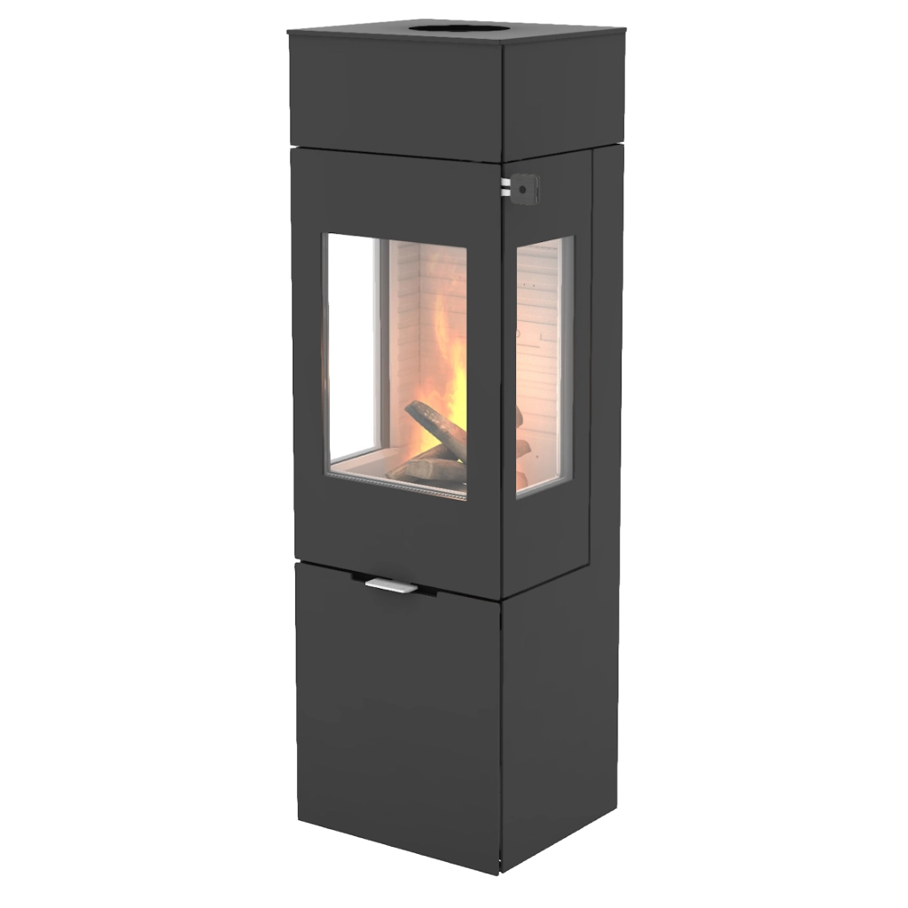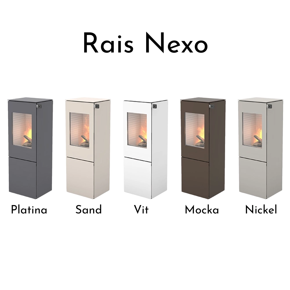 RAIS Nexo 140 kombinerar skandinavisk design med smart funktionalitet och blir ett naturligt blickfång i rummet. Med sina rena linjer och höga format skapar den en elegant och modern atmosfär, samtidigt som de generösa glasrutorna ger fantastisk insyn till lågorna – från flera håll i rummet.