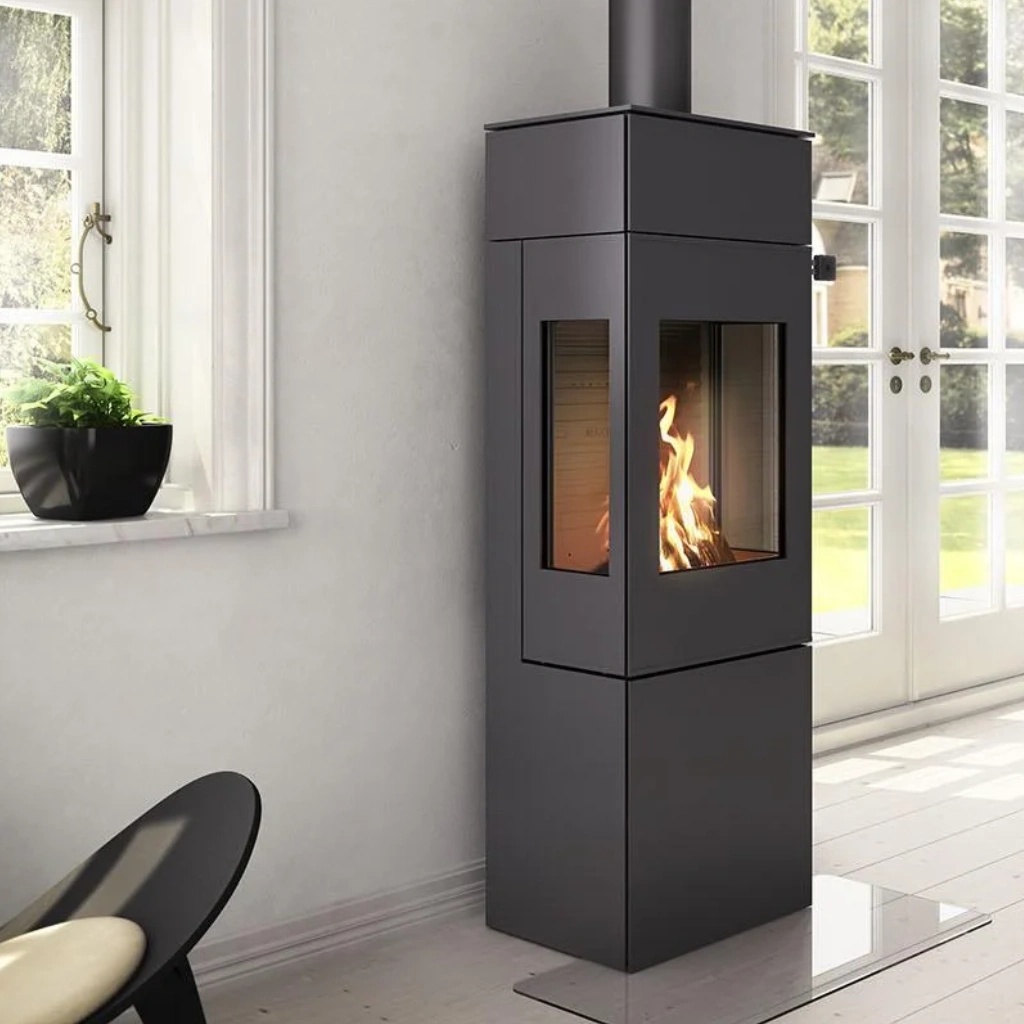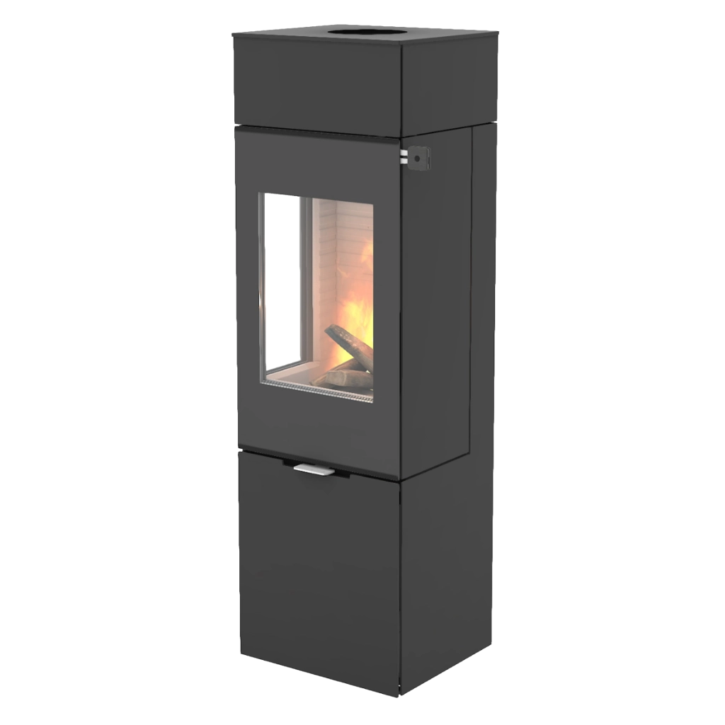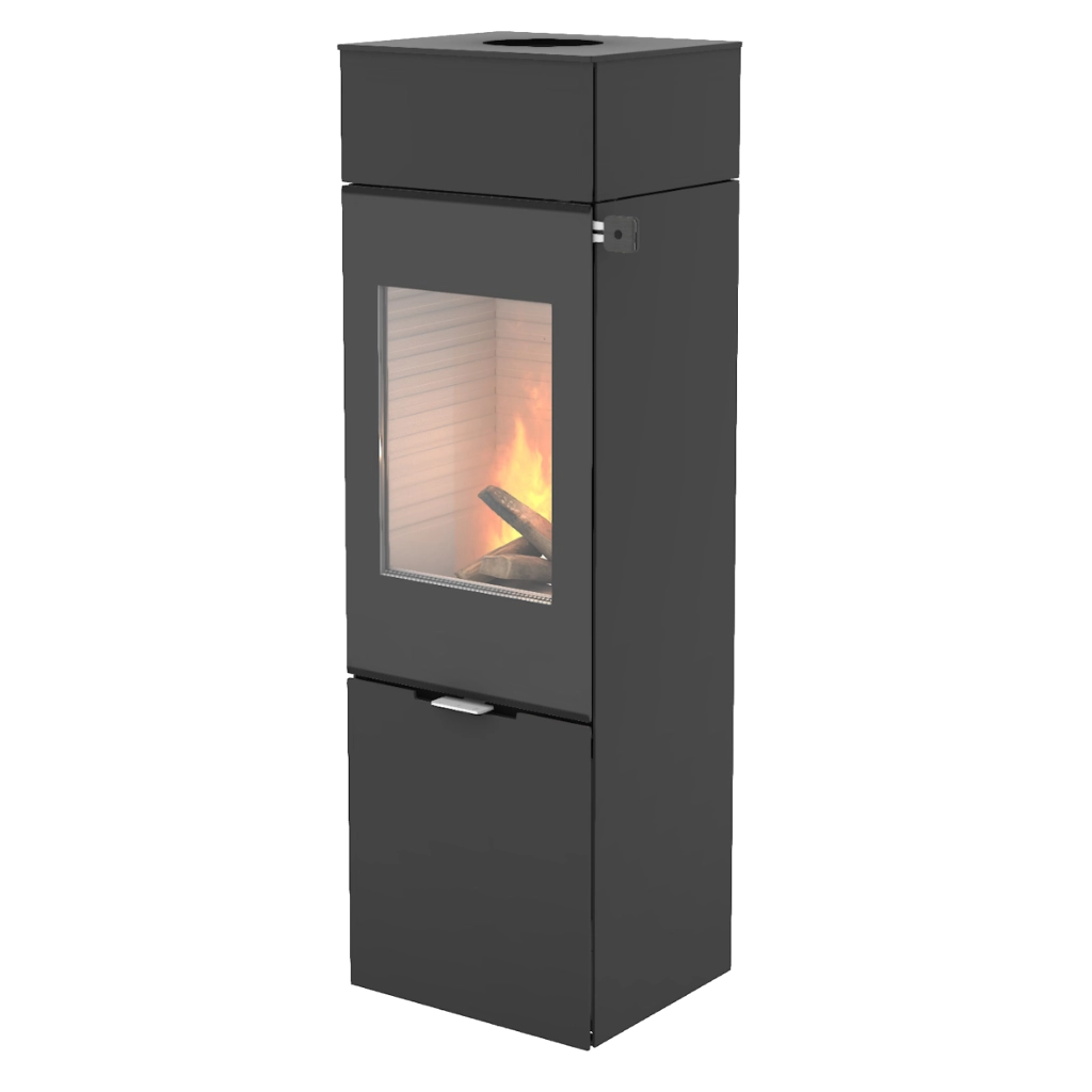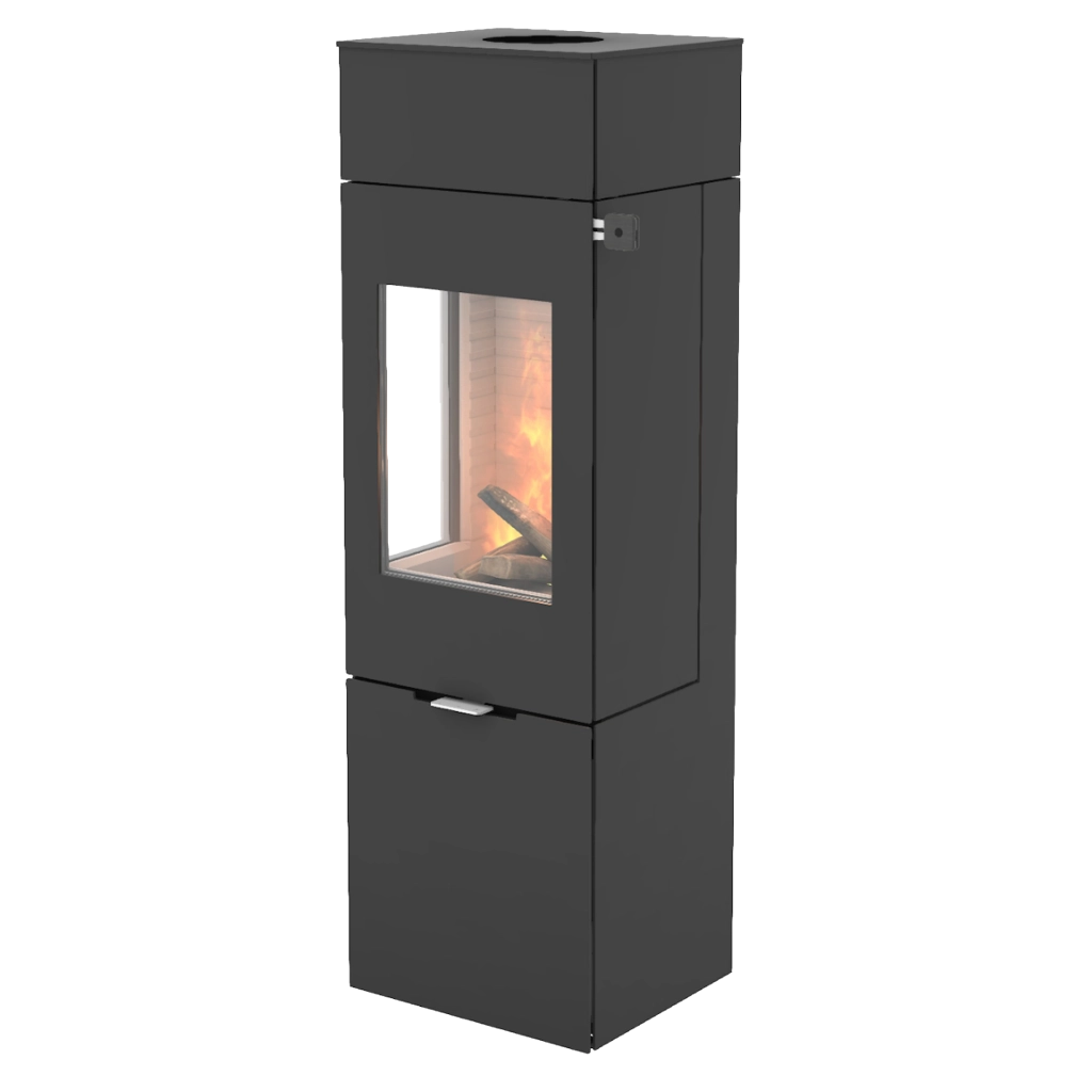 RAIS Nexo 140 kombinerar skandinavisk design med smart funktionalitet och blir ett naturligt blickfång i rummet. Med sina rena linjer och höga format skapar den en elegant och modern atmosfär, samtidigt som de generösa glasrutorna ger fantastisk insyn till lågorna – från flera håll i rummet.