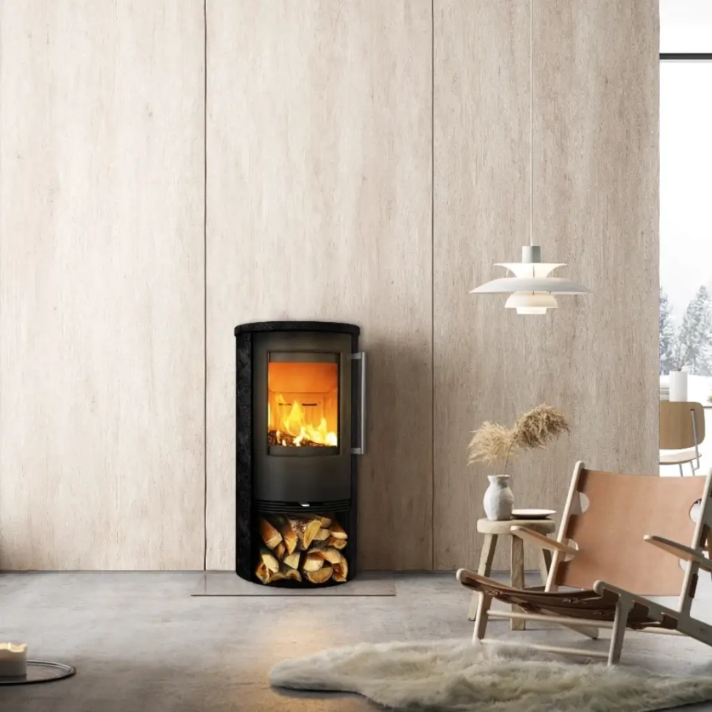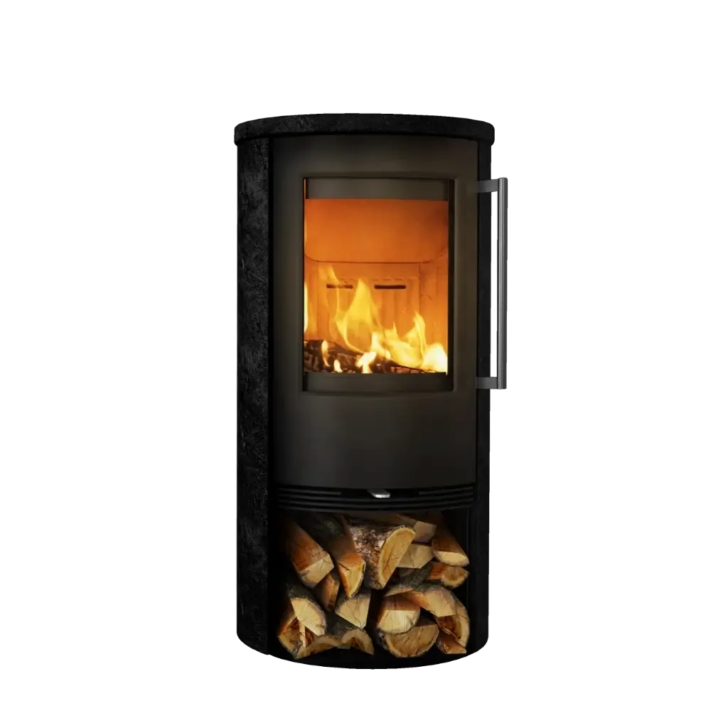 Sandstenen behåller värmen länge efter att elden slocknat, vilket ger jämn och långvarig uppvärmning – perfekt för dig som söker både komfort och energieffektivitet. Den svarta finishen framhäver kaminens rena linjer och passar utmärkt in i nutida och minimalistiska inredningsstilar.
