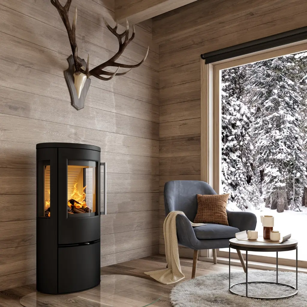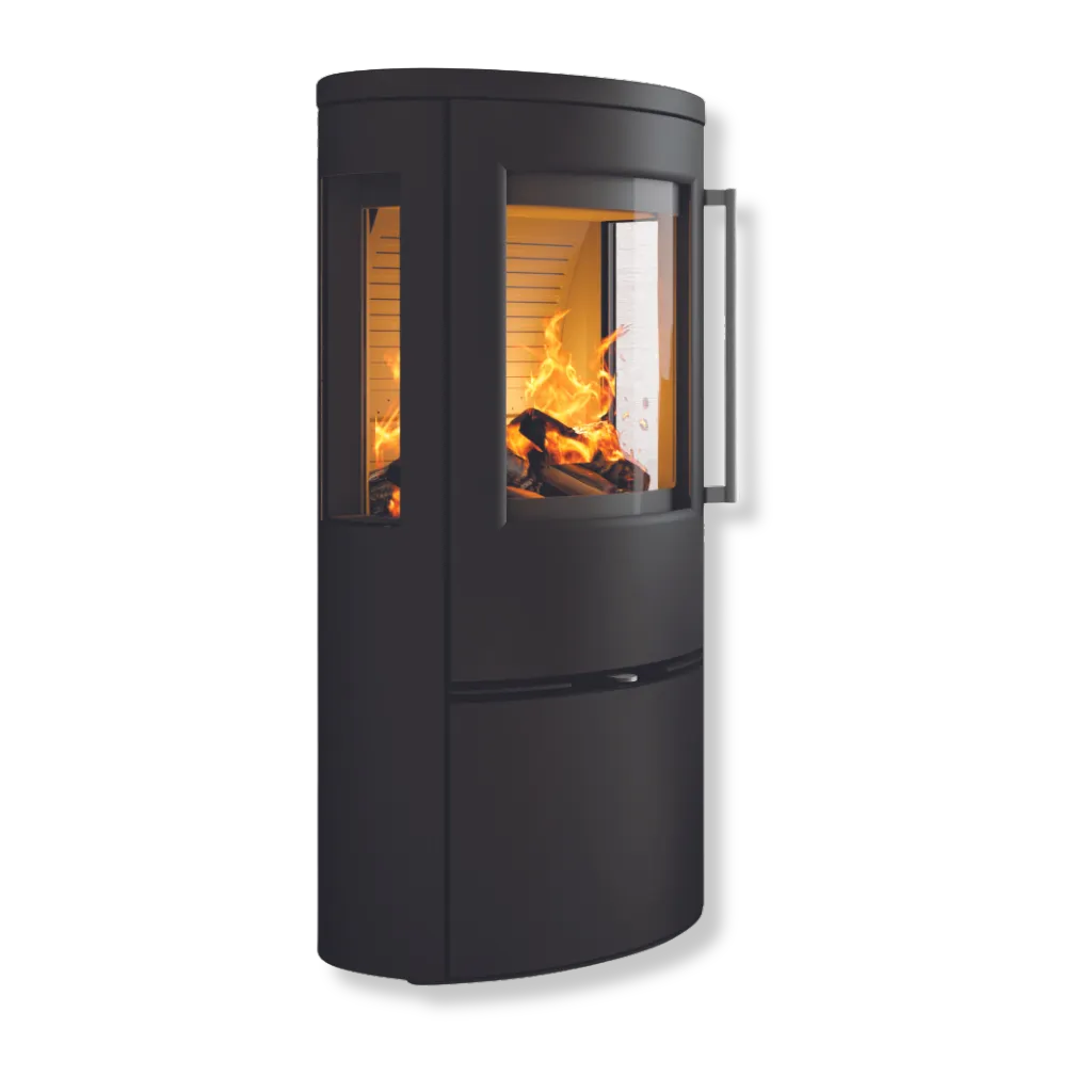 Termatech TT23RG är en stilfull och modern vedkamin med en elegant ellipsformad siluett som ger ett mjukt och harmoniskt intryck i rummet. Tack vare de generösa sidoglasen får du en fantastisk panoramavy av elden, oavsett var i rummet du befinner dig.