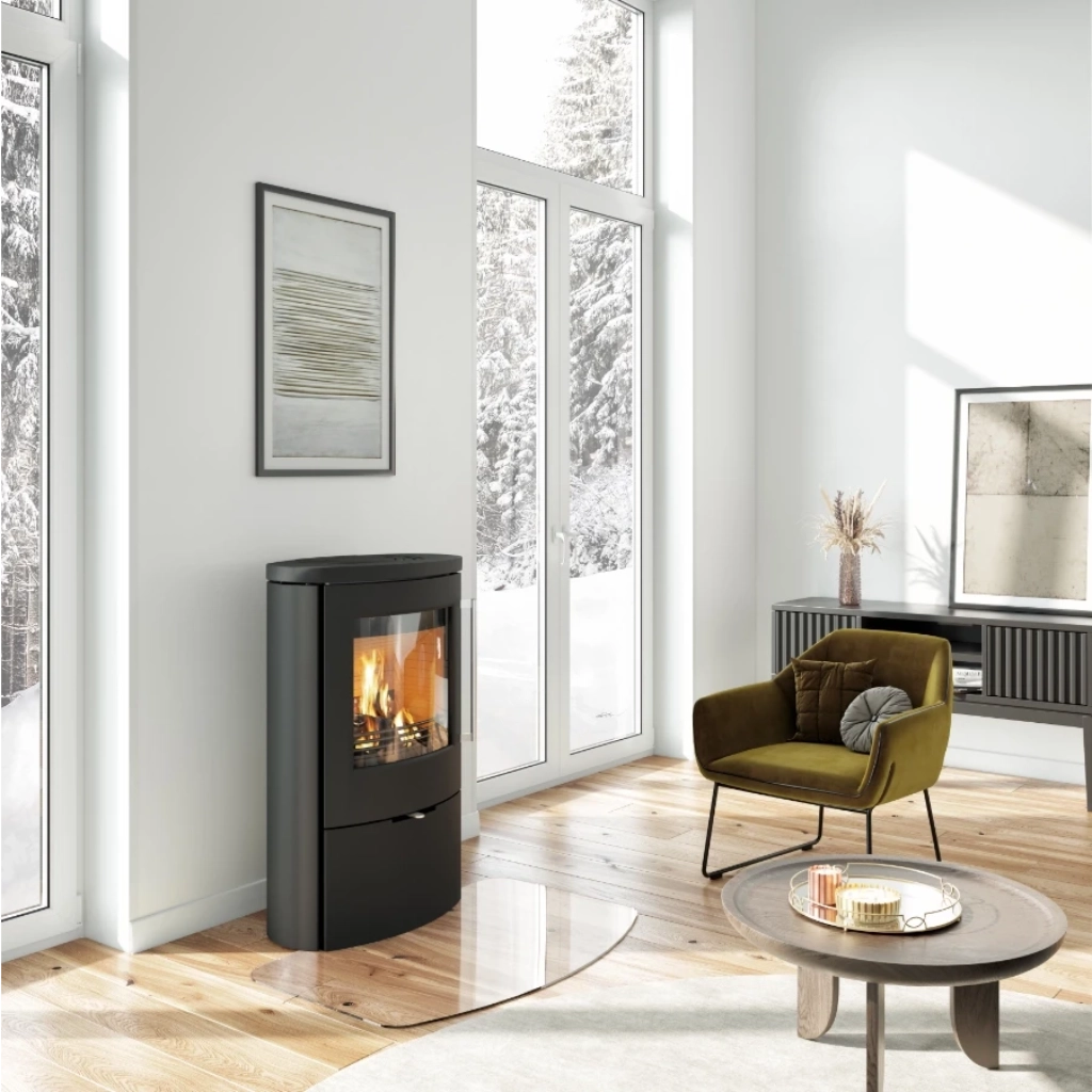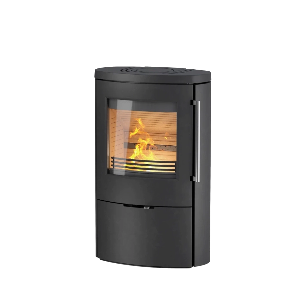 Trots sitt nättare yttre rymmer TT80RL en generös brännkammare på hela 42 cm, vilket ger gott om plats för veden och en imponerande vy över lågornas sken. Den lägre höjden gör att modellen lämpar sig särskilt väl i bostäder med begränsad takhöjd – utan att kompromissa med eldupplevelsen.