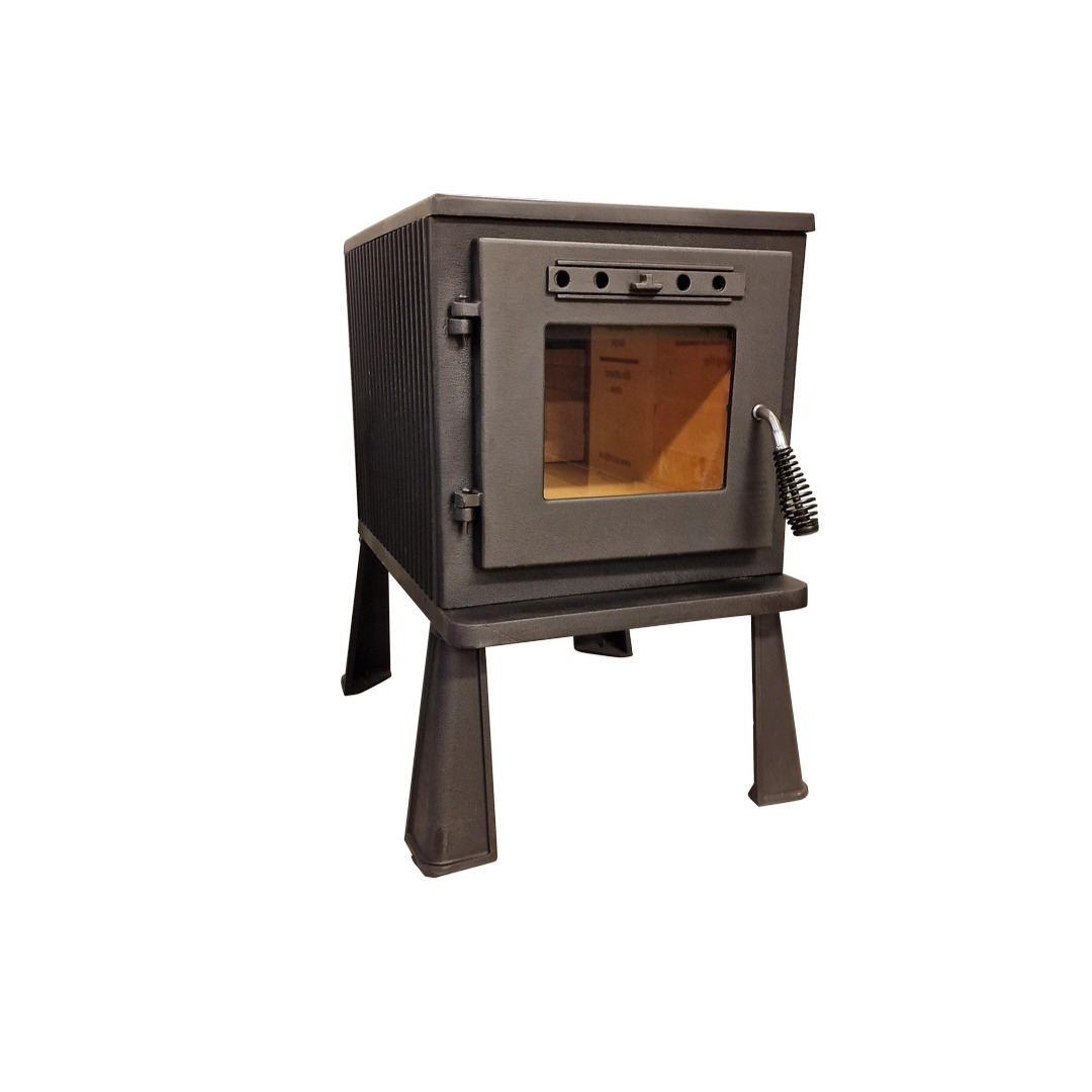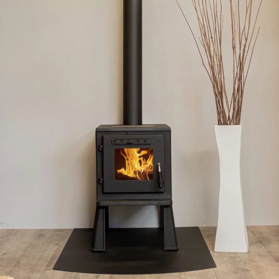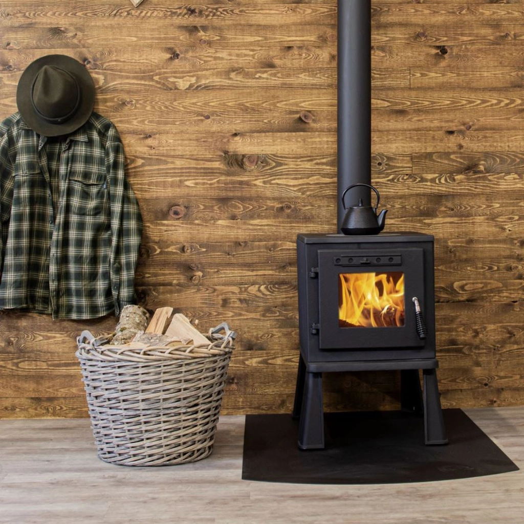 Kaminen är utrustad med en eldstad av värmelagrande eldfast tegel, vilket gör att den behåller värmen längre. Tack vare kokplattan på ovansidan kan du enkelt värma vatten eller laga mat, även vid strömavbrott – ett smart val för off-grid-liv eller beredskap.