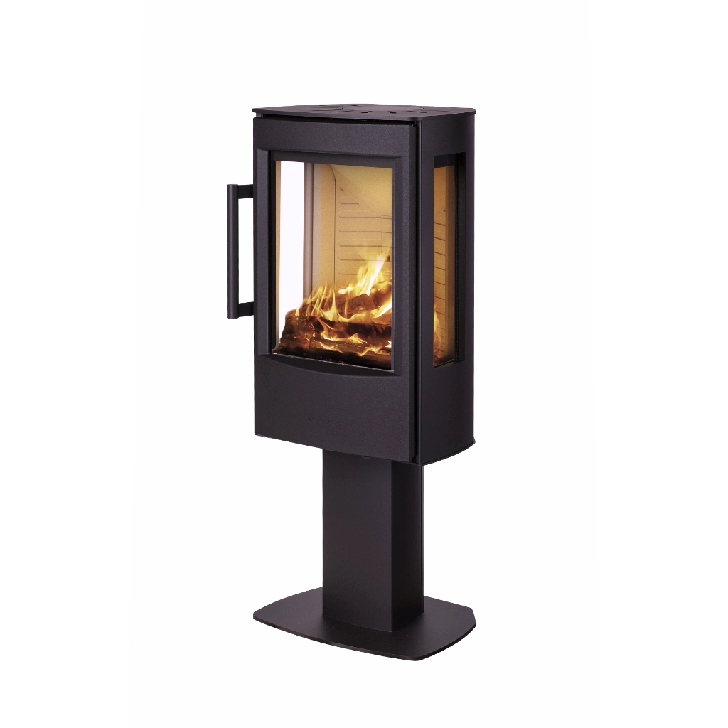 Wiking Miro 1 är en nätt och elegant kamin som passar utmärkt i mindre utrymmen utan att tumma på eldutsikten. Den har ett stort frontglas i en gedigen gjutjärnslucka samt stora sidoglas som ger en generös och härlig insyn till elden från flera vinklar. Wiking Miro 1 finns i tre vackra varianter för att anpassas efter ditt hem: med sockel, med pelarfot eller som väggfäst modell. En perfekt kombination av funktion och estetik i ett kompakt format.