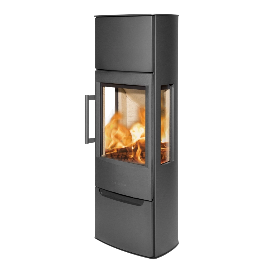 Wiking Miro 5 är en elegant braskamin med möjlighet att komplettera med ett värmemagasin ovanför eldstaden. När kaminen är tänd värms stenarna i värmelagringsfacket upp och lagrar värmeenergi. Efter att elden har slocknat avger stenen långsamt värme, vilket ger en behaglig och energieffektiv uppvärmning av rummet. Kaminen har dessutom stora sidoglas som ger en generös insyn till elden från flera vinklar, vilket skapar en varm och inbjudande atmosfär i hemmet.