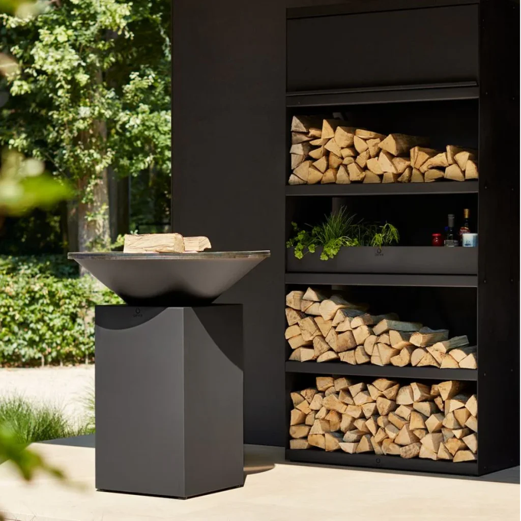 OFYR Classic Black 85 är ett vedeldat utekök som kombinerar funktionalitet med modern estetik. Den matta svarta finishen ger grillen ett exklusivt uttryck som passar lika bra på altanen, uteplatsen eller i trädgården. Oavsett miljö blir den ett stilrent blickfång – även när den inte används.