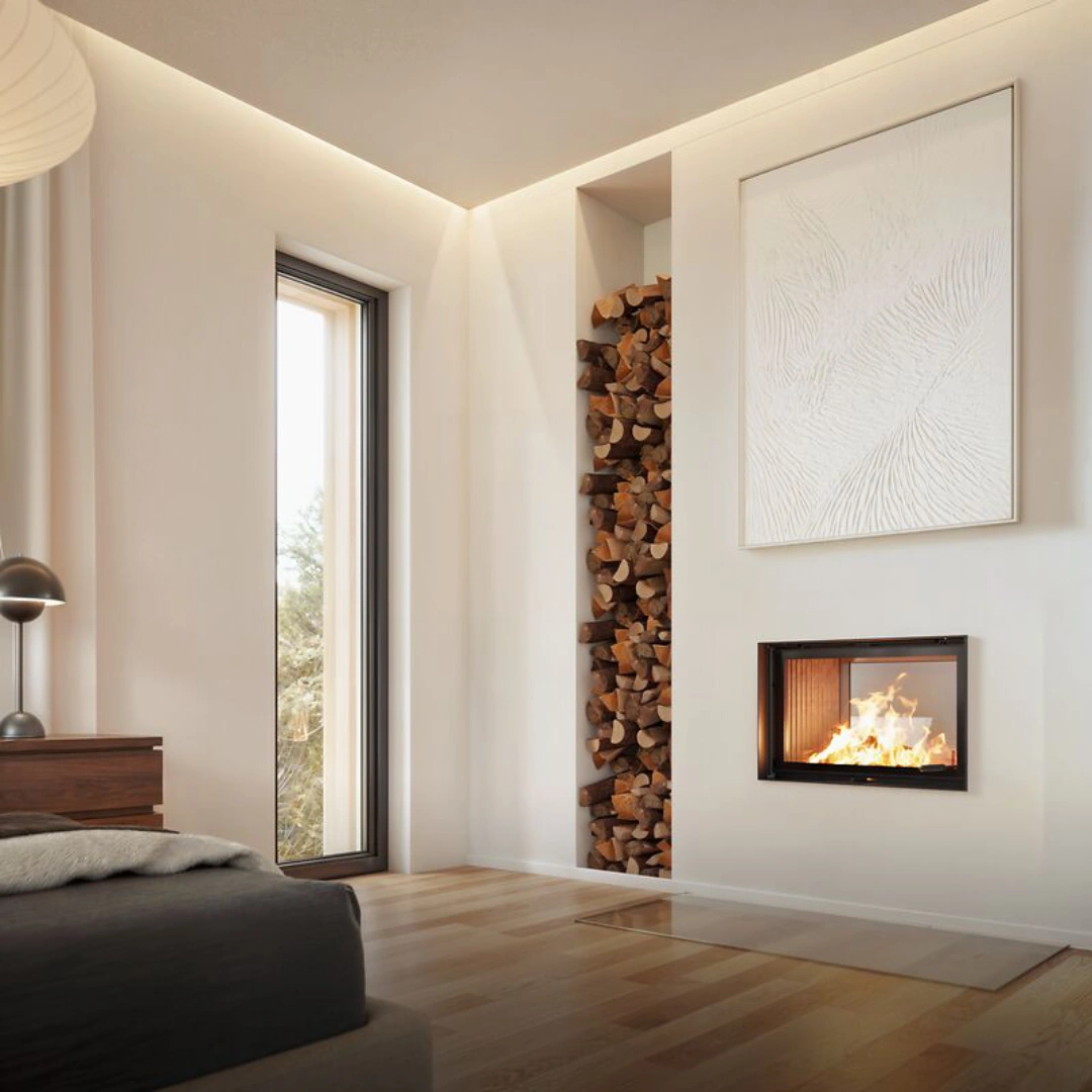 Brunner BKH Tunnel 42-66 är en exklusiv vedeldad insats som ger elden en helt ny dimension i hemmet. Tack vare sin dubbelsidiga design med stora glasytor skapar den en unik känsla av öppenhet, där lågorna blir en naturlig länk mellan två rum. Perfekt som rumsdelare i en öppen planlösning eller som ett stämningsfullt blickfång i både vardagsrum och matsal.