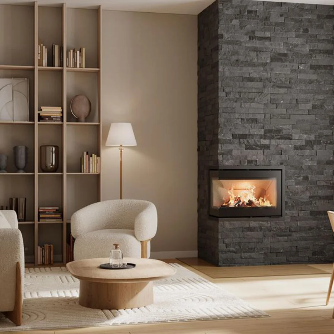 HWAM I 40/56m är en eldstadsinsats med det lilla extra – framtagen för att ge känslan av en inbyggd designspis, men med friheten att placeras nästan var som helst i hemmet. Med sin rena form och kompakta storlek passar den perfekt både i moderna nybyggen och äldre hus med karaktär.