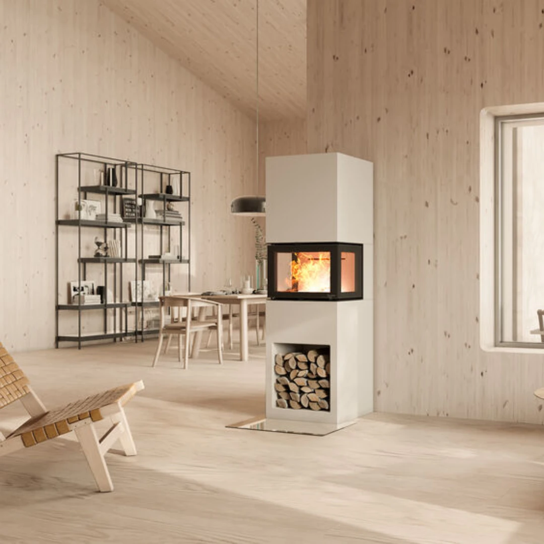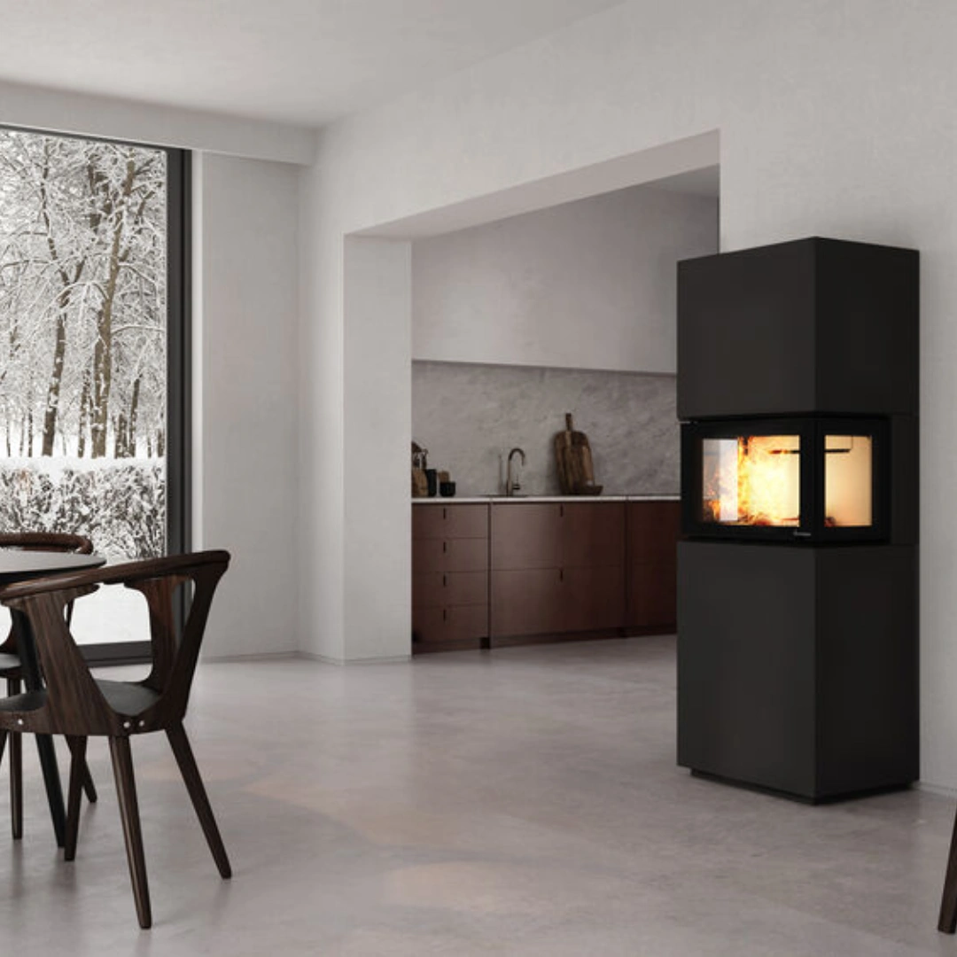 N-21U Exclusive är utrustad med glas på tre sidor, vilket ger dig en imponerande panoramavy av elden och skapar en varm och inbjudande atmosfär i ditt hem. Perfekt för dig som vill ha en modern, exklusiv insats som gör både värme och estetik till en självklarhet.