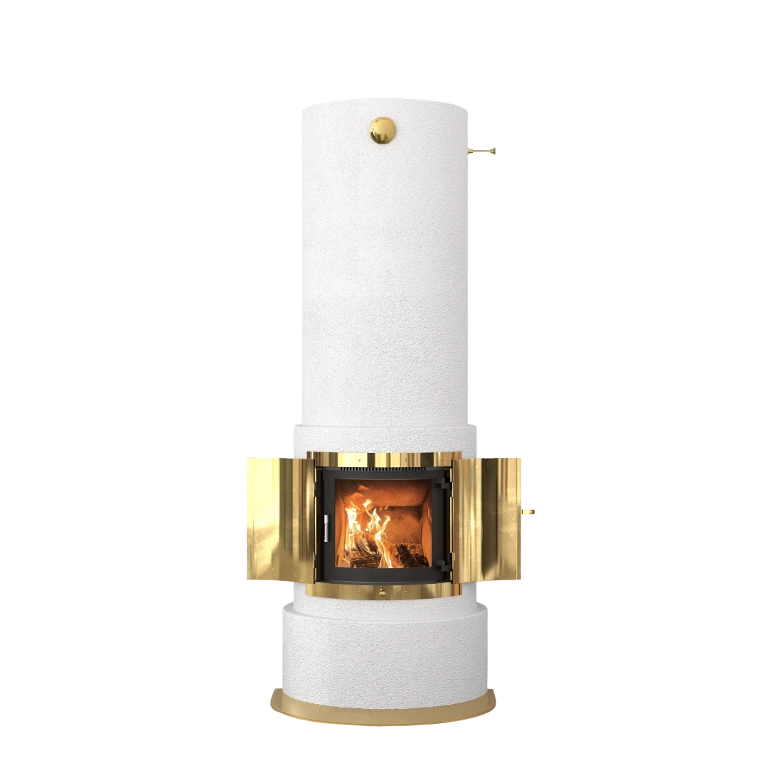 Den runda formen skapar ett mjukt och harmoniskt uttryck i rummet, och den vita putsade ytan kan enkelt målas i valfri kulör med silikat- eller kalkfärg. Anpassa höjden efter takhöjd och stil med olika förhöjningar, och välj till dekorativa detaljer som oglaserad kakelkrona, mittsims eller fotsims – för en skräddarsydd design med extra elegans.