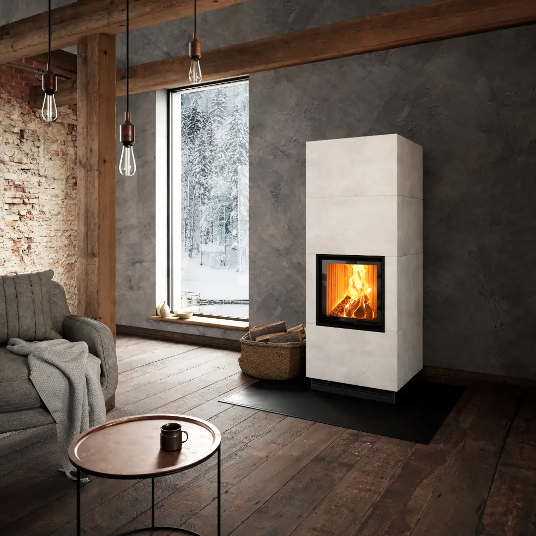 Kaminen är byggd i ett prefabricerat system med en totalhöjd på 172 cm och måtten 64 x 64 cm. Det gör installationen snabbare och smidigare än en traditionell murad eldstad, utan att kompromissa med känslan av kvalitet och genuin hantverkstradition.