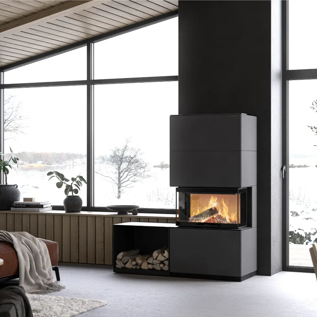 De generösa glasen på tre sidor ger en fantastisk eldsynlighet och låter lågorna bli rummets naturliga mittpunkt. Samtidigt är i51A kompakt och lätt att placera, även direkt mot brännbara väggar, vilket gör den idealisk även för mindre utrymmen eller öppna planlösningar.