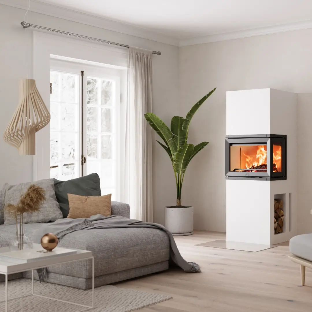 Jøtul FS 520-serien består av färdiga byggsatser med både insats och omramning, vilket gör installationen snabb och smidig. Den slimmade designen passar i de flesta hem, och ytan kan enkelt målas direkt efter montering. Välj själv om du vill ha en slät eller mer strukturerad finish – du bestämmer stilen!