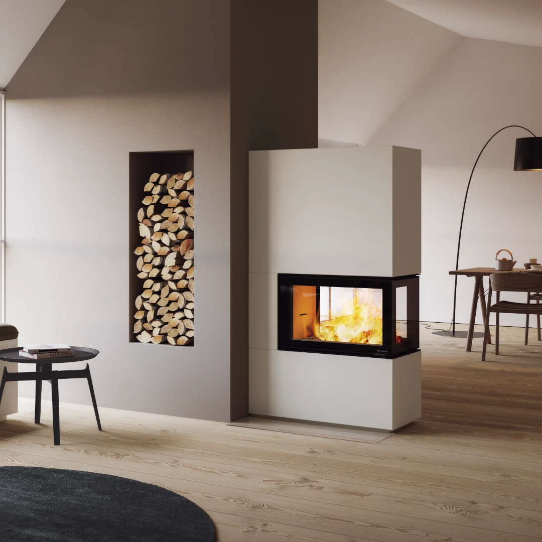 Tack vare glas runtom hela eldstaden bjuder Davos P på en magnifik vy över elden från fram-, bak- och sidorna – perfekt om du vill använda spisen som rumsavdelare med värme och stämning från flera håll.