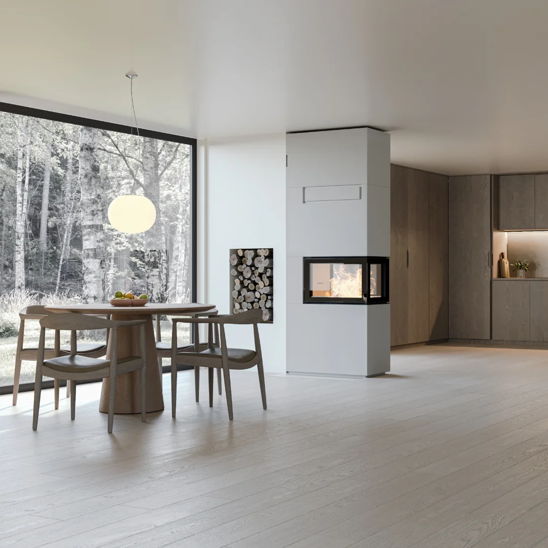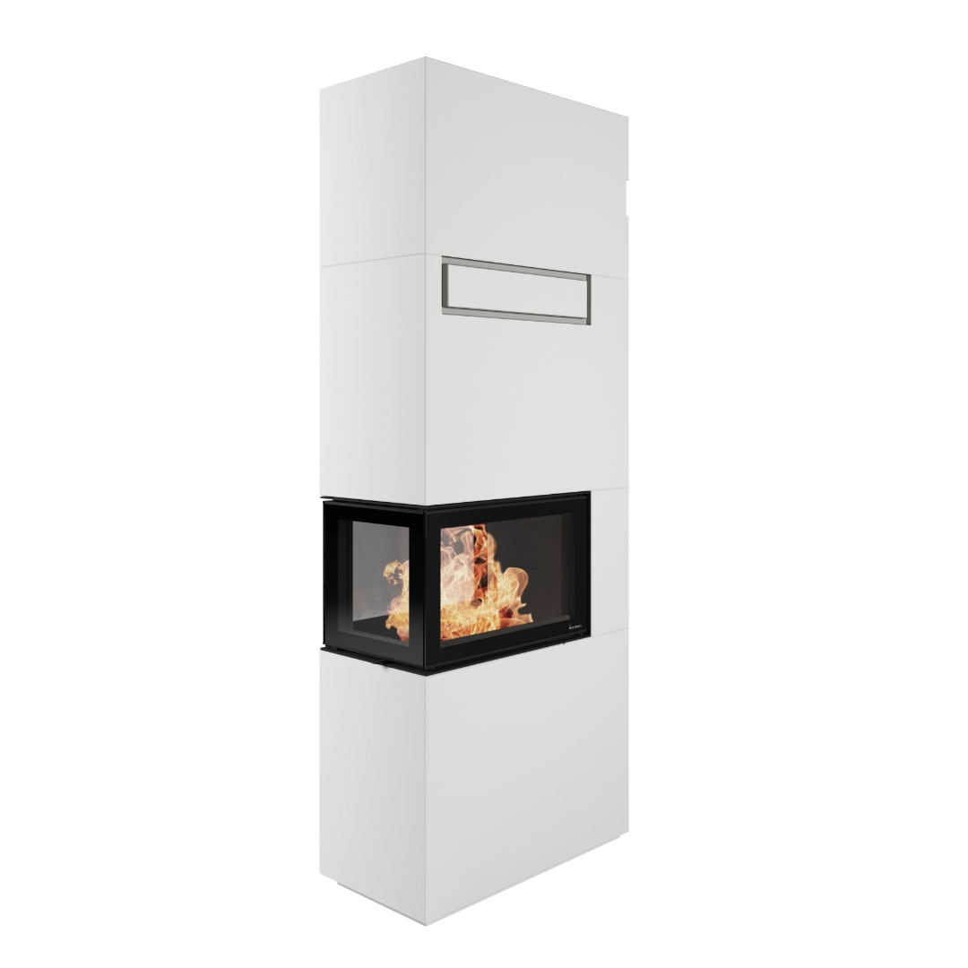 Genève P Hög är en takhög murspis som kombinerar elegans och effektivitet på ett sätt som få andra eldstäder. Den höga designen skapar ett kraftfullt visuellt uttryck, samtidigt som elden får stå i centrum – synlig från flera håll tack vare dubbla IR-glas.