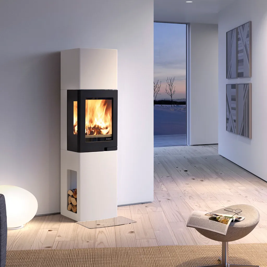 Letar du efter en stilren eldstad som passar i mindre utrymmen? Nordpeis Lisboa är en kompakt och slimmad murspis som tar minimalt med plats – utan att kompromissa med värme eller design. Med sin högt placerade brännkammare och glas på tre sidor får du fantastisk insyn till elden oavsett var du befinner dig i rummet.