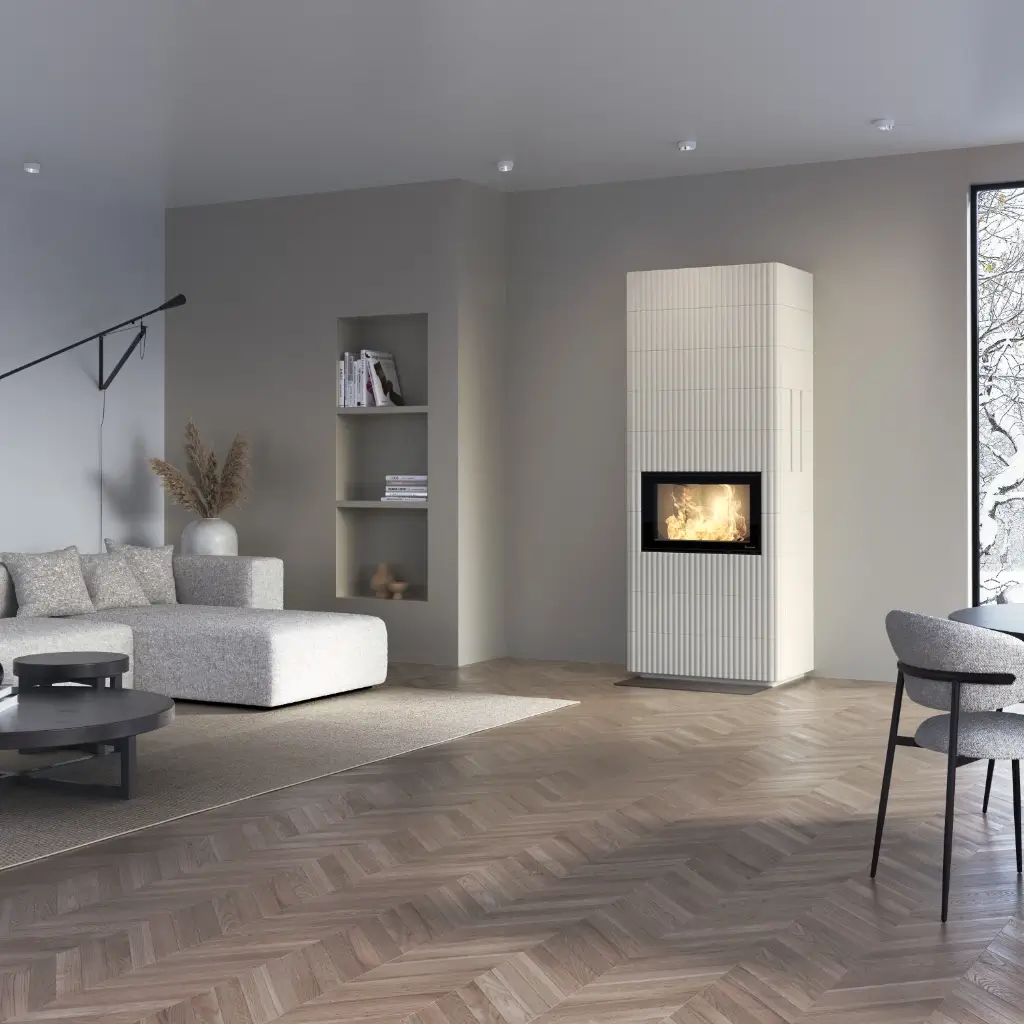 Nordpeis Wave F är den perfekta eldstaden för dig som vill uppleva eldens magi i full skala. Med sin extra stora frontinsats får du maximal insyn till lågorna – något som skapar både atmosfär och närvaro i rummet. Den vågformade ytan ger kaminen ett levande uttryck som förändras i takt med ljusets skiftningar, vilket gör varje stund framför elden unik.