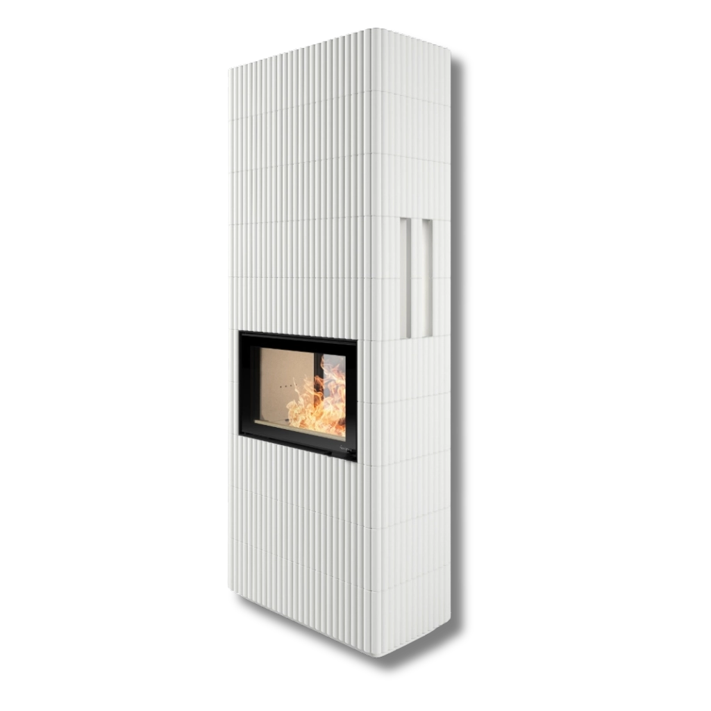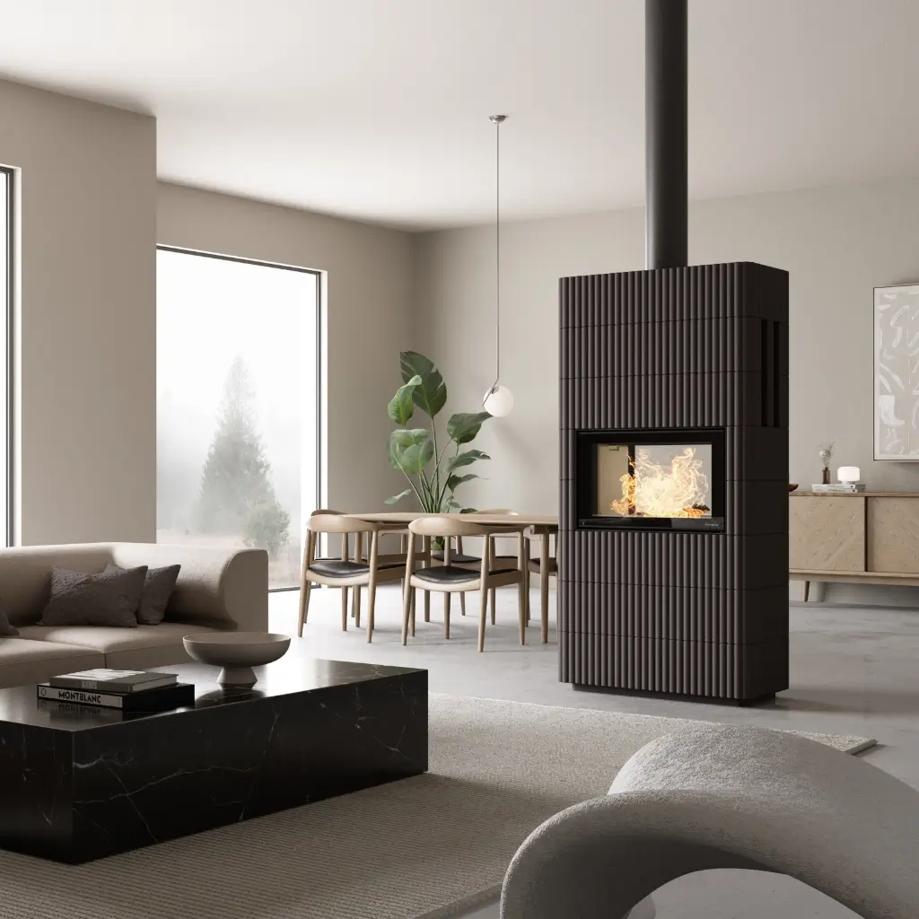 Den vågformade ytstrukturen ger ett levande intryck som skiftar i takt med ljuset under dagens gång. Anpassa eldstaden efter din stil – måla den i en kulör som passar ditt hem och låt den bli en exklusiv del av inredningen.