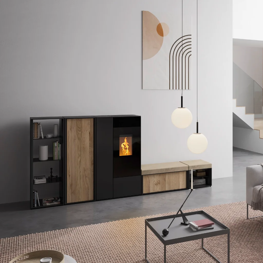 Connect Pellets/F22 från RIKA erbjuder en helt ny dimension av flexibilitet och komfort för ditt hem. Tack vare modulära braskaminsdelar i olika former, material och ytor kan du skapa en skräddarsydd eldstad som smälter samman med din bostads unika stil – samtidigt som du får kraftfull och effektiv värme.