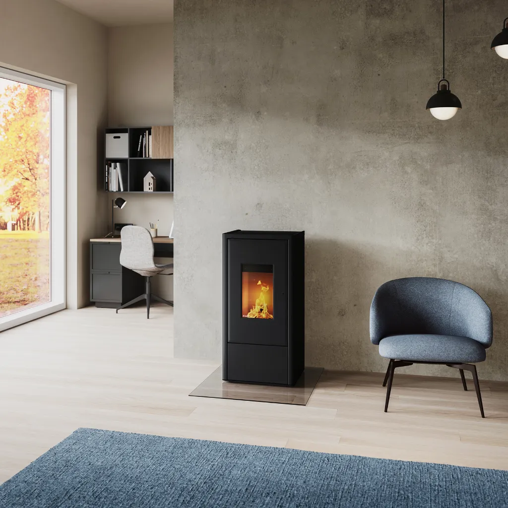 Rika Primo är pelletskaminen för dig som uppskattar stilren återhållsamhet utan att kompromissa med prestanda och kvalitet. Med sin tidlösa industriella design och svarta stålpaneler passar Primo perfekt i både moderna och klassiska miljöer där enkelhet möter elegans.