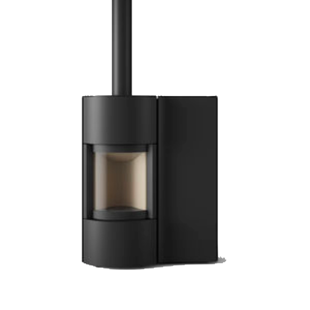 Stûv P20B är en slimmad och uppkopplad pelletskamin som kombinerar modern teknologi med tidlös estetik. Med sin rundade front i glas och kompakta format smälter den in i alla typer av hem – från det klassiska till det minimalistiska.