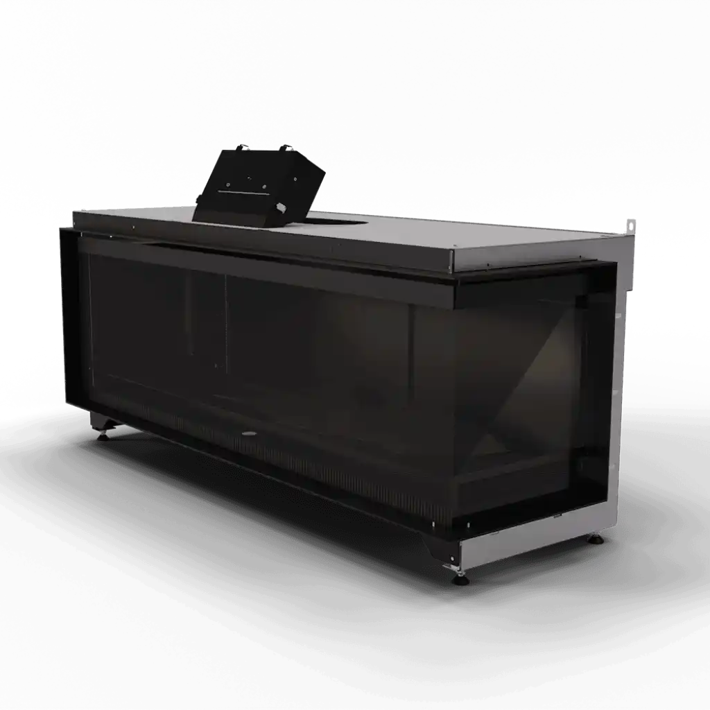 Som standard levereras modellen med en stilren slät bottenpanel, men med tillvalet designinredning kan du lyfta uttrycket ytterligare och skapa en eldstad som blir ett självklart blickfång. Tack vare den smarta LED-belysningen i interiören framträder eldstaden som en elegant inredningsdetalj – även när lågorna är släckta.