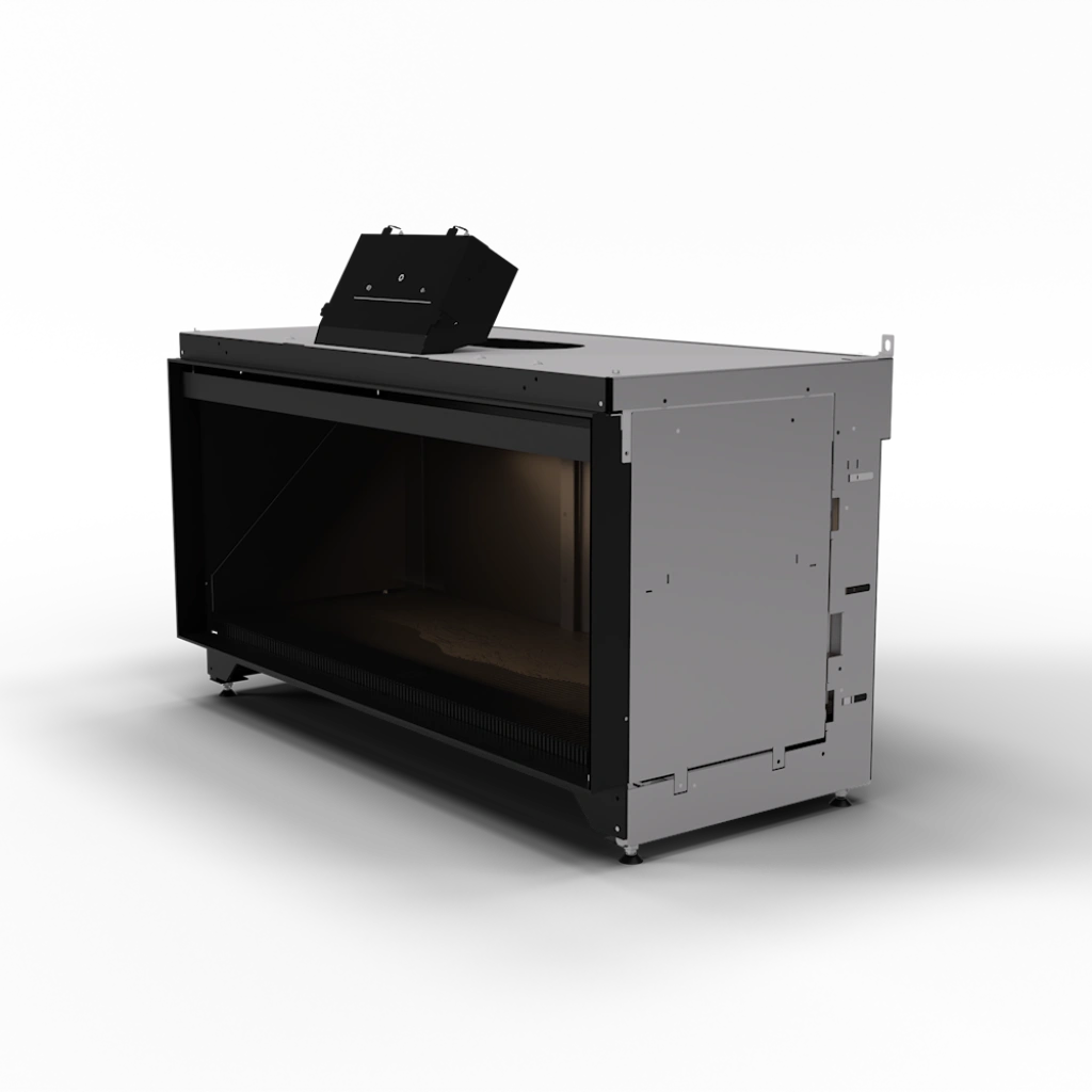 Med sina rena linjer och mångsidiga dimensioner är den här inbyggnadsmodellen idealisk för installation i en platt vägg, i skräddarsydda möbler eller som en elegant lösning i vardagsrum, restauranger och hotell. För dig som vill kombinera atmosfär med funktion kan eldstaden dessutom utrustas med Atmos värmeelement (tillval), som ger en behaglig och jämn värme.