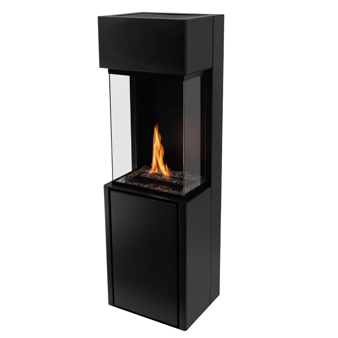 Med en tank på 5 liter får du upp till 20 timmars brinntid, och du kan enkelt styra lågans höjd i två nivåer – med en knapptryckning eller via fjärrkontroll. Värmen sprids genom eldstadens övre del och kan höja temperaturen i rummet utan behov av skorsten eller ventilation.