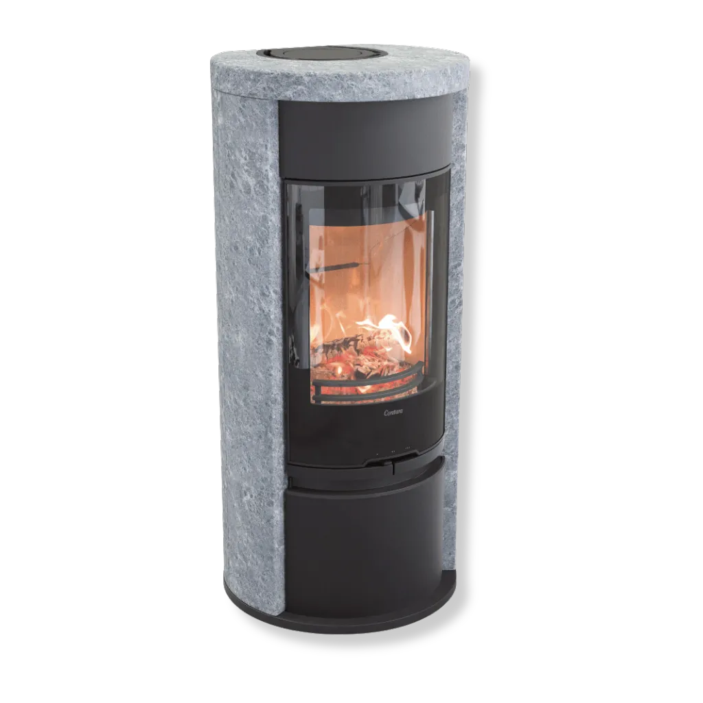 Contura 620TG är en elegant täljstenskamin som kombinerar naturligt ådrad täljsten med en blank glaslucka för ett stilrent och samtida uttryck. Täljstenen ger kaminen effektiv värmelagring, vilket gör att värmen stannar kvar långt efter att elden slocknat.