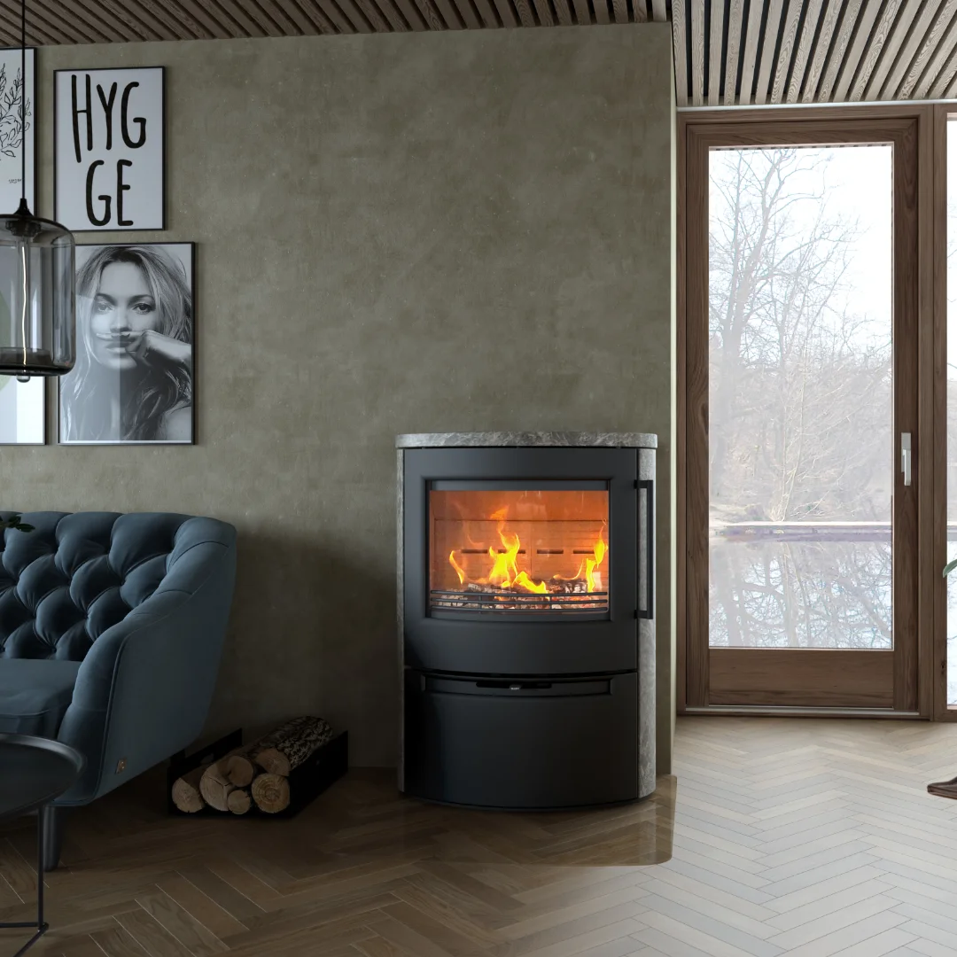 Med sin tidslösa design, stora glaslucka och generösa insyn till lågorna skapar kaminen en varm och inbjudande känsla i rummet – perfekt för dig som vill ha både komfort, kvalitet och naturens skönhet i hemmet.