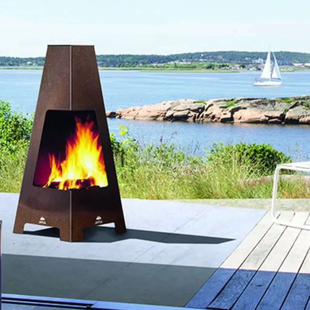 Designad av Hareide Design, är Jøtul Terrazza inte bara en eldstad – det är en stilren samlingspunkt för trädgården. Tillverkad i cortenstål får den snabbt en vacker, rostig patina som skyddar mot väder och vind, så att kaminen kan stå ute året om.