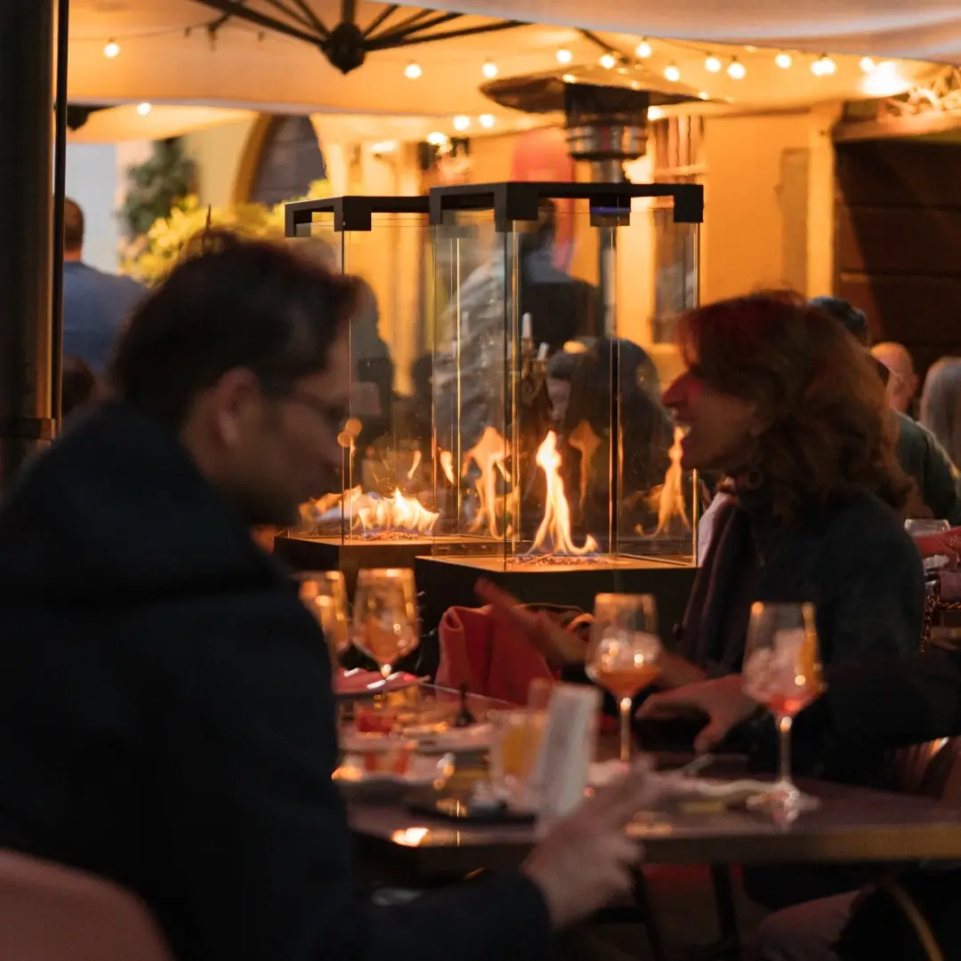 Med sin slimmade siluett, höga glasrör och synliga lågor blir Faro en naturlig samlingspunkt där värme och estetik möts. Den är byggd för att klara utomhusbruk året runt och kombinerar effektivitet med stilren närvaro.