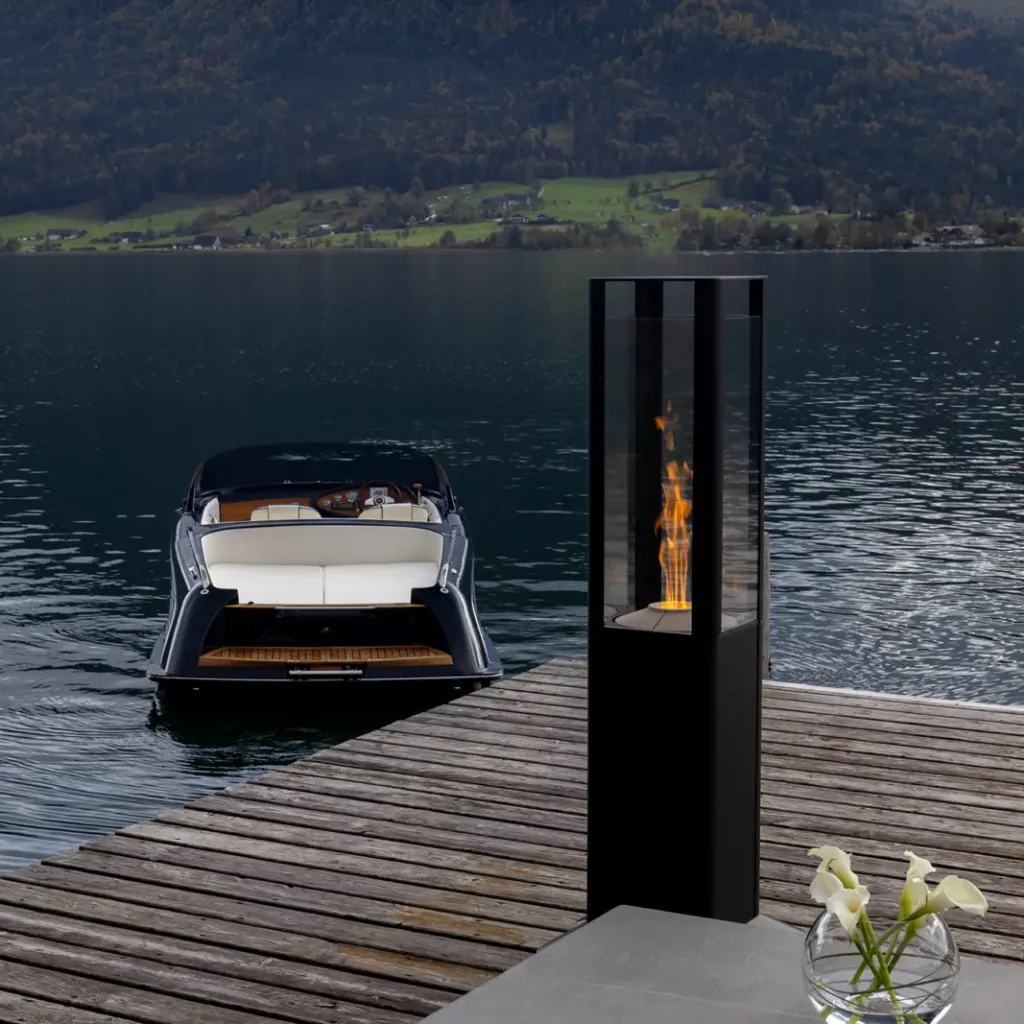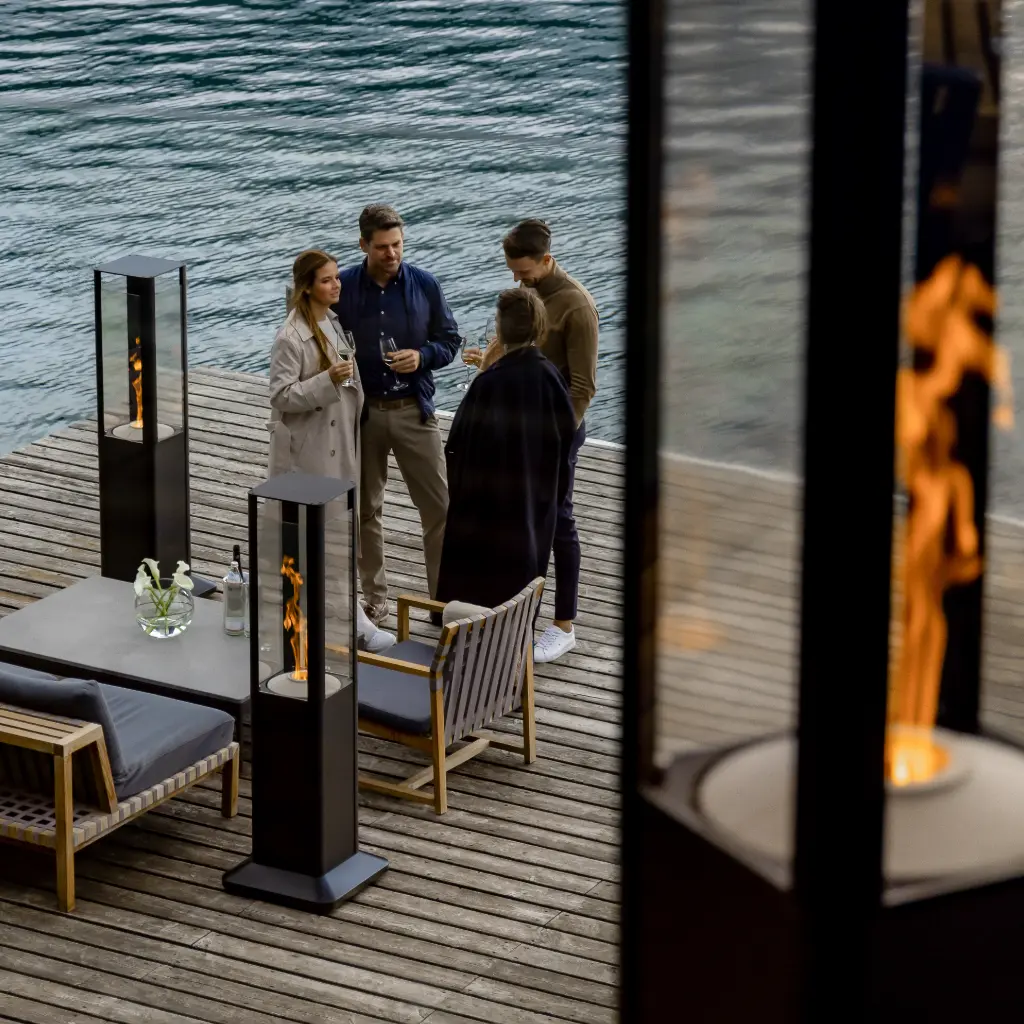 RIKA Terra är en stilfull och miljövänlig terrassvärmare som gör att du kan njuta av utomhuslivet året runt. Med sin slanka design och höga, lugna lågor skapar den en exklusiv atmosfär samtidigt som den sprider en behaglig värme – perfekt för kyliga kvällar på uteplatsen, balkongen eller i trädgården.