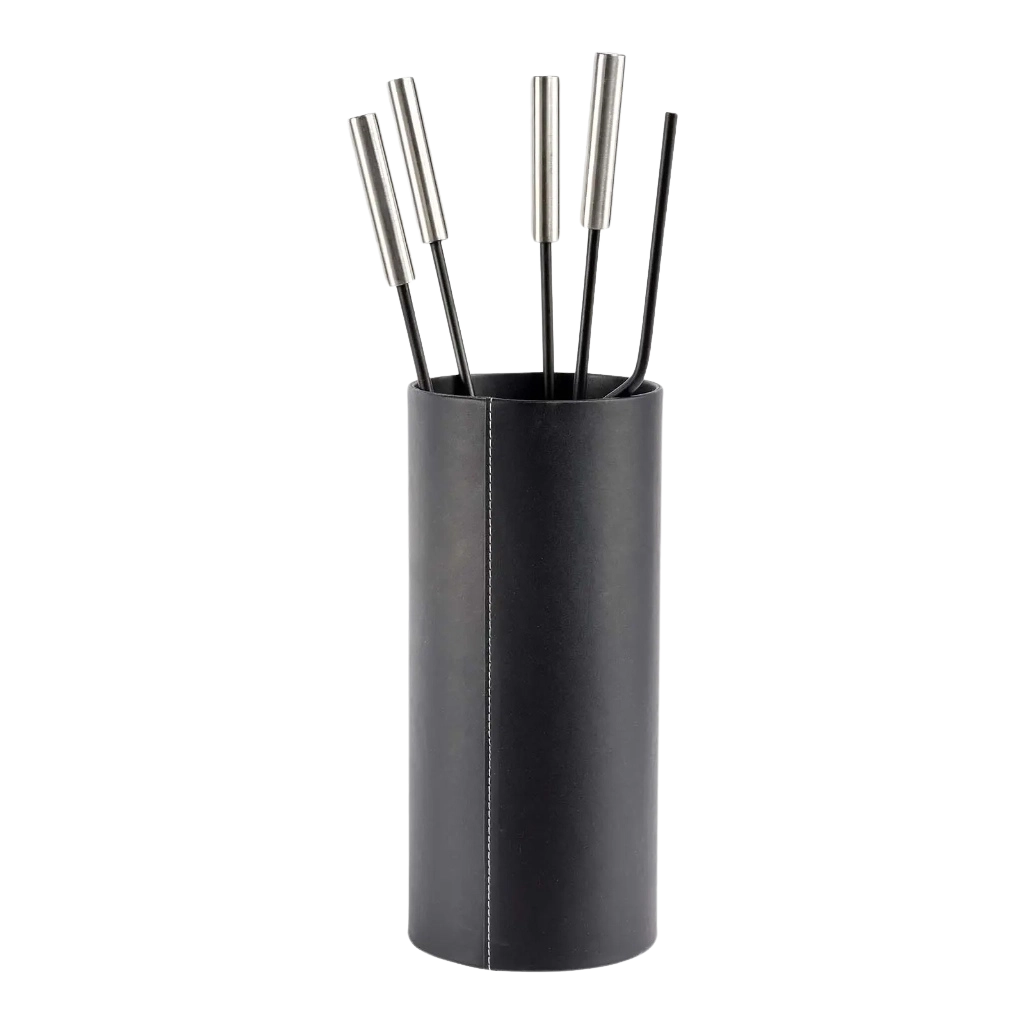 Set med 4 spisverktyg i praktiskt ställ, estetiskt tillval för din eldstad.