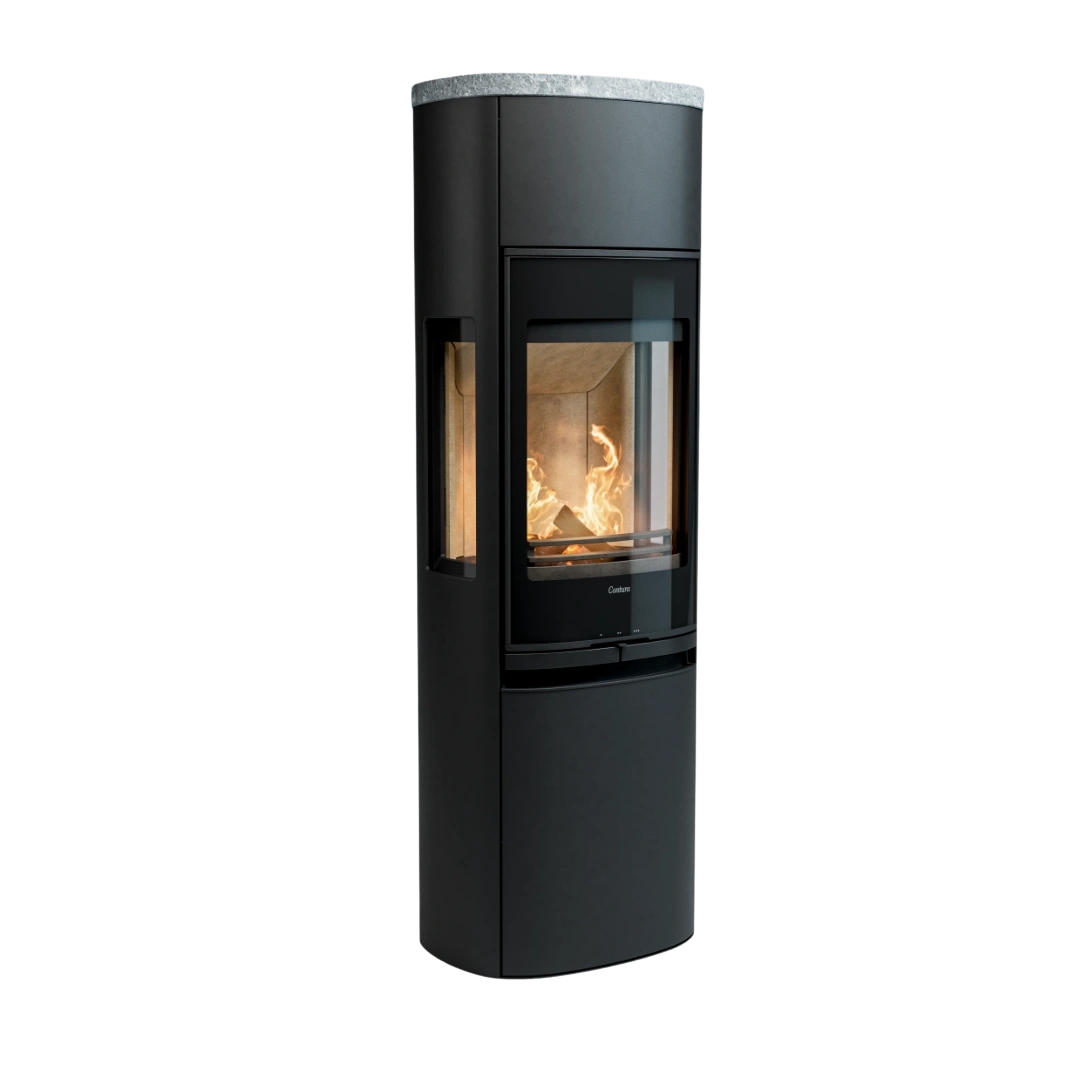 Contura 996G Style är kaminen för dig som vill uppleva elden i sin fulla prakt. Med sina generösa sidoglas och den eleganta glasluckan i fronten får du en fantastisk vy över lågorna från flera håll i rummet. Den höga förbränningskammaren lyfter elden upp från golvet, vilket inte bara gör den mer synlig – den sprider också ljus och värme jämnare i hemmet. Resultatet är en kamin som blir en självklar samlingspunkt och ett levande inslag i inredningen.